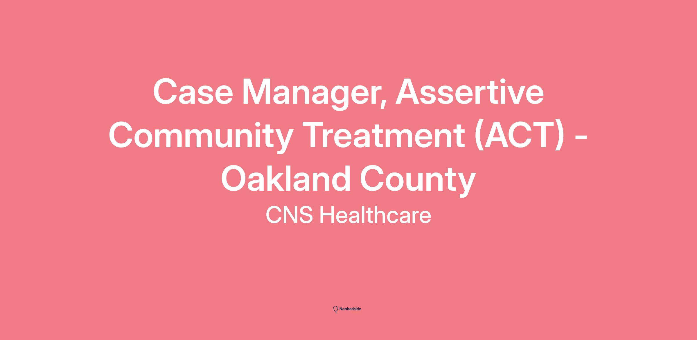 As a Certified Community Behavioral Health Clinic, CNS Healthcare's mission is to serve the people of our communities. The Assertive Community Treatment (ACT) Case Manager serves as a member of a community-based mental health team that provides services for individuals experiencing serious mental illness. The mission of ACT is to help people become independent and integrate into the community as they experience recovery through a team-based service model. The ACT Case Manager will work with individuals and groups to promote optimum mental health. In addition, helps individuals deal with addictions and substance abuse, self-esteem, and issues associated with mental and behavioral health.