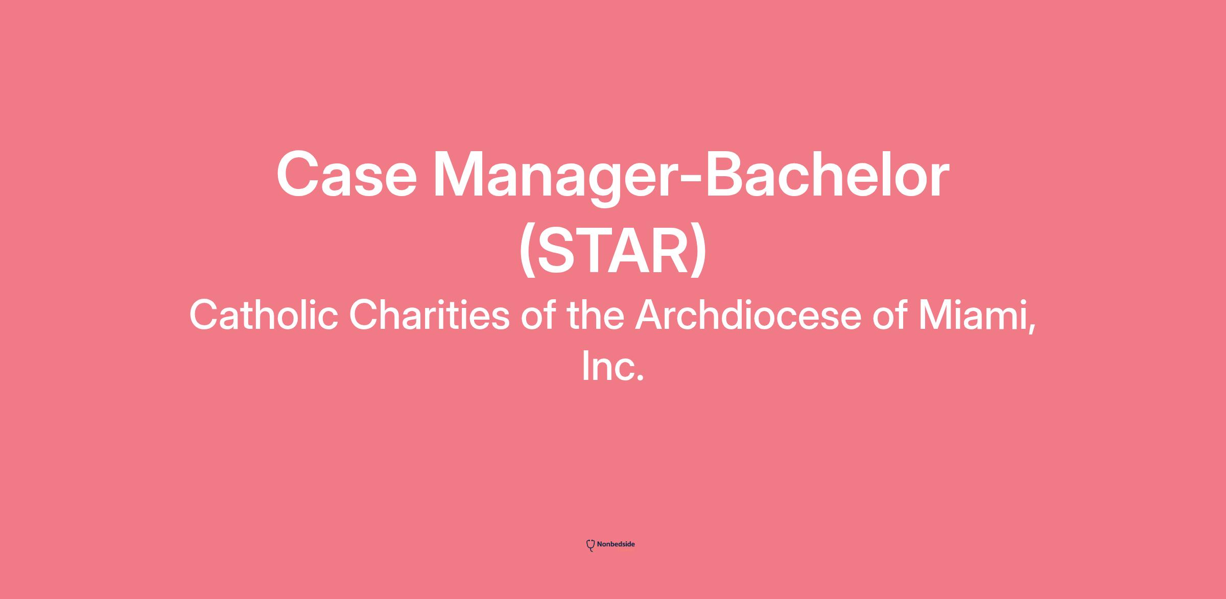 Overview Join to apply for the Case Manager-Bachelor (STAR) role at Catholic Charities of the Archdiocese of Miami, Inc. .