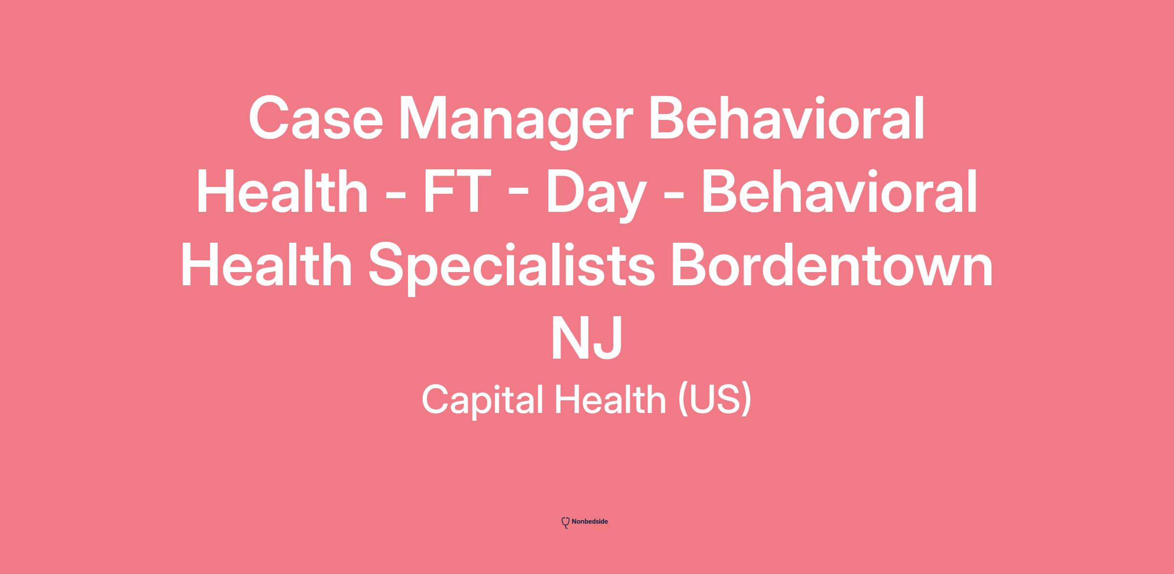 Case Manager Behavioral Health – FT – Day – Behavioral Health Specialist, Bordentown, NJ