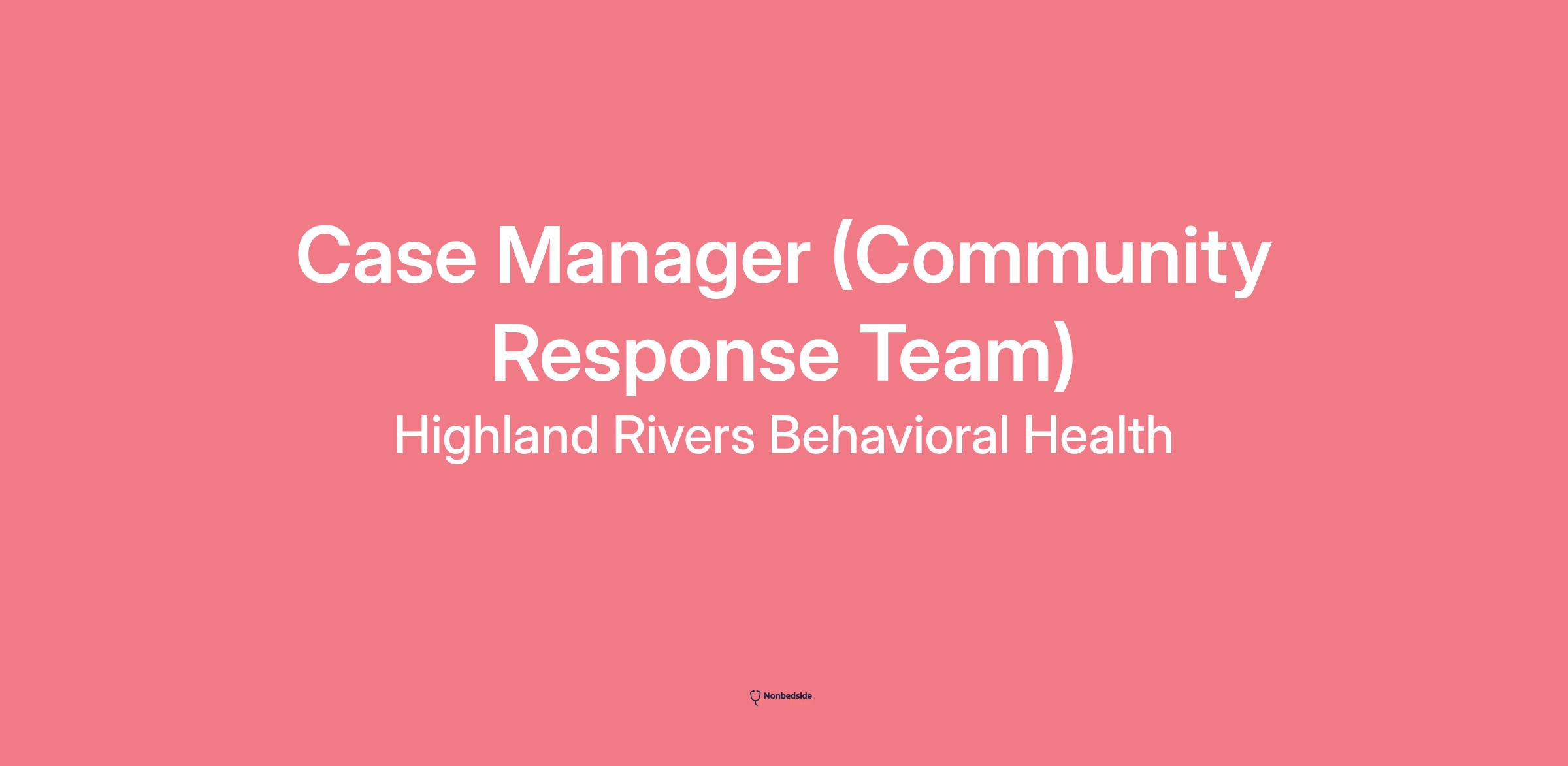 Join to apply for the Case Manager (Community Response Team) role at Highland Rivers Behavioral Health .