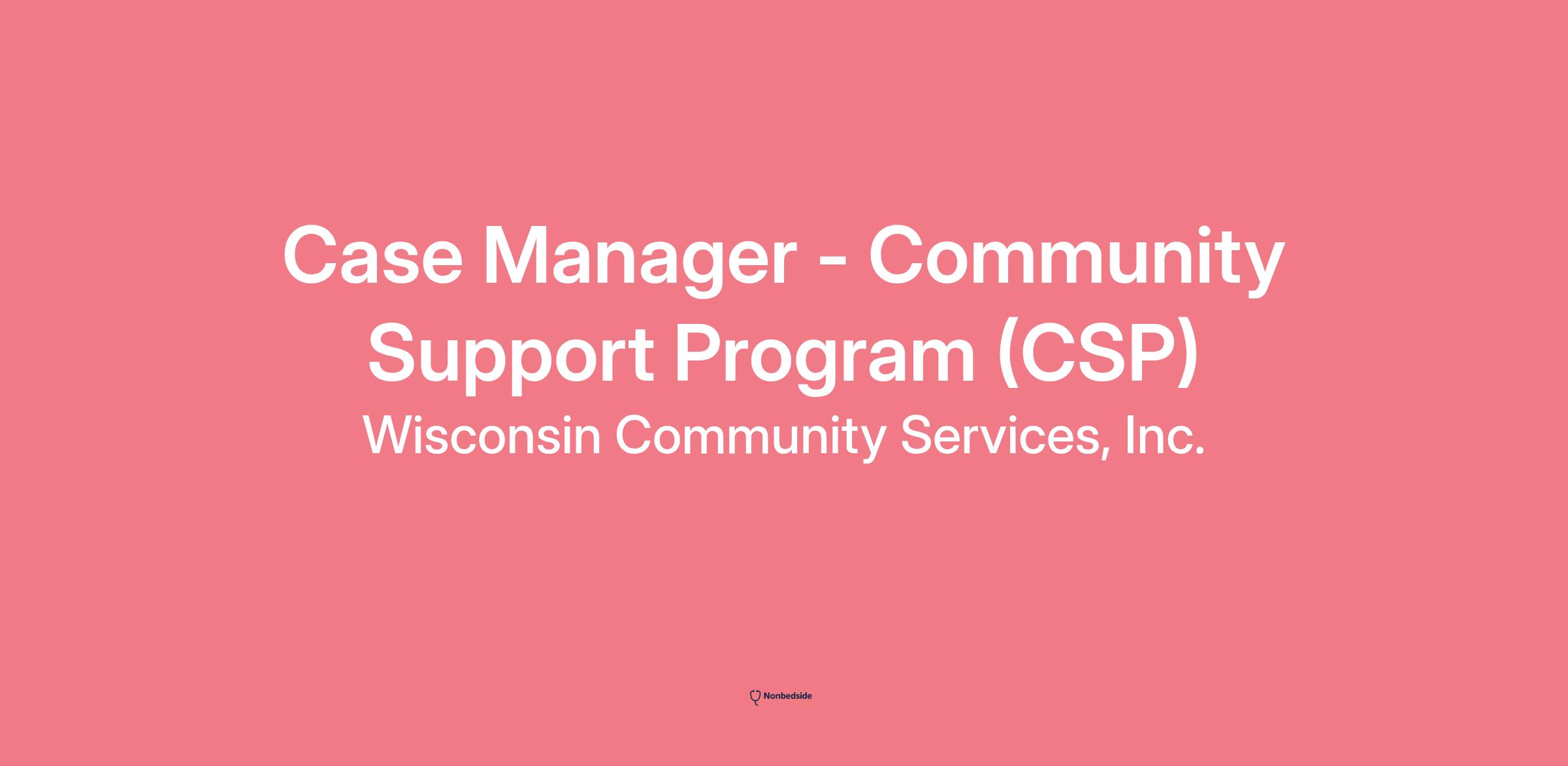 Case Manager - Community Support Program (CSP) Join Wisconsin Community Services, Inc. for the Case Manager - Community Support Program (CSP) role.