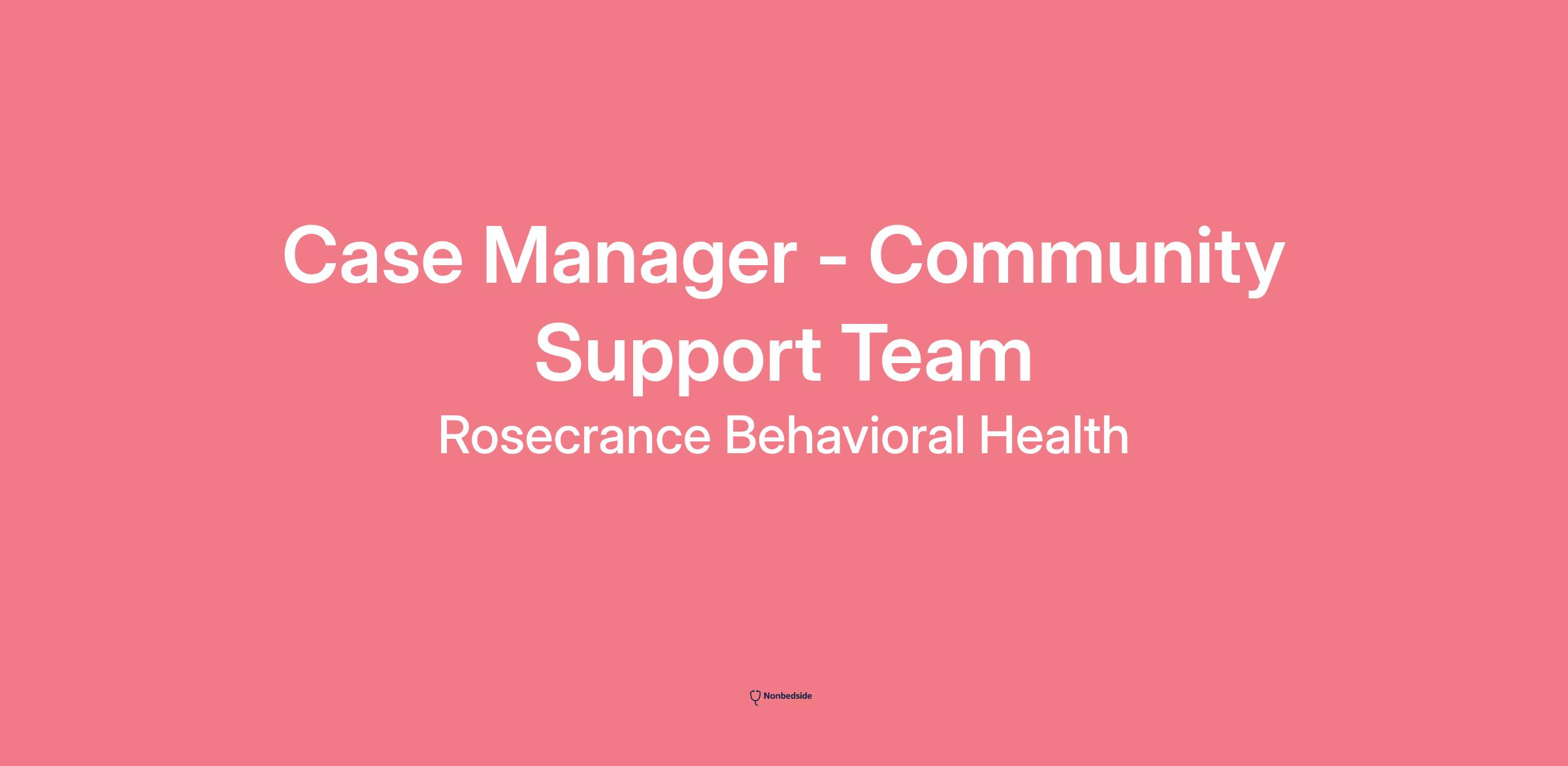 Overview Join to apply for the Case Manager - Community Support Team role at Rosecrance Behavioral Health
