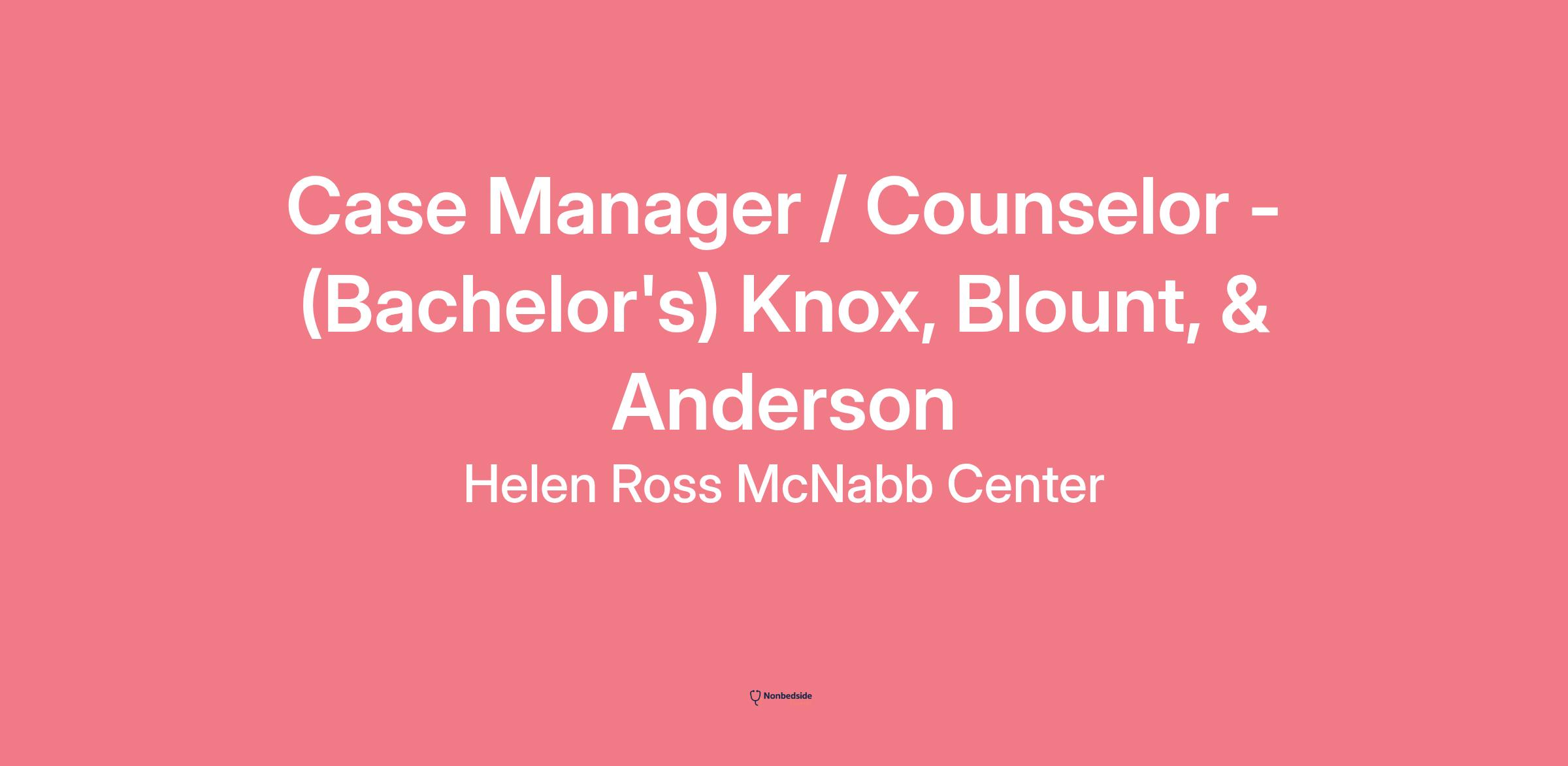 Case Manager / Counselor - (Bachelor's) Knox, Blount, & AndersonNow Hiring:Case Managers, Specialists, Counselors, and Peer Support StaffLocation:Knox, Blount, & Anderson Counties, TennesseeStart Your Career with Purpose “ Join the McNabb Center Today!Are you ready to make a real difference? The McNabb Center is actively hiring passionate and dedicated professionals to join our mission of Improving the lives of the people we serve. With multiple positions available across East Tennessee, now is the perfect time to begin or grow your career in mental health and social services.We are currently accepting applications for bachelor's level positions in the following areas:Non-Residential PositionsCase ManagersCase Managers take a client-centered approach to care coordination, supporting individuals as they work toward mental health, recovery, and stability. Working with a defined caseload, Case Managers develop treatment plans tailored to client goals and provide ongoing advocacy, transportation (as needed), and follow-up support.Examples of Case Management roles include:HealthLink Care CoordinatorKnox CTT Case ManagerHUD/Housing Case ManagerStarting Pay: $18.21 “ $19.34 / hour (based on education, experience, and position type)Note:F-Endorsement driver's license may be required for positions involving client transportation.Specialists & CounselorsOur Specialists and Counselors provide individualized support, advocacy, education, and referrals across a wide range of community-based programs. Services may include home visits, employment assistance, family support, and child development education.Examples include:Foster Care SpecialistKnox Co. OA Peer Recovery SpecialistIPS Employment SpecialistStarting Pay: $18.97 “ $21.19 / hour (based on position, education, and experience)Residential Counselor PositionsResidential Counselors work in 24/7 facilities providing direct client care and support, including intake assessments, safety checks, group facilitation, and crisis stabilization. Schedules may include evening, overnight, weekend, and holiday shifts. Shift differentials are available for 2nd and 3rd shifts.Examples of Residential Facilities:Katie Miller & Gateway (Adolescent Residential Treatment)ILS (Long-Term Mental Health Housing)CenterPointe Detox & Residential TreatmentCrisis Stabilization Units (Knox, Hamblen, and Children's Hospital)Starting Pay: $19.15 “ $20.18 / hour (bachelor's level)High school graduate positions also available”see separate listing.General Requirements & Additional InformationDriver's license and reliable personal vehicle required for most roles.On-call responsibilities and travel requirements vary by position.PRN (as-needed) opportunities available.Salary is based on position, education, experience, licensure, and client population.If selected for further consideration, you may be contacted via phone, text, or email by a McNabb Center hiring manager.EOE McNabb Center is an Equal Opportunity Employer. The Center provides equal employment opportunities to all employees and applicants for employment and prohibits discrimination and harassment of any type without regard to race, color, religion, age, sex, national origin, disability status, genetics, protected veteran status, sexual orientation, gender identity or expression, or any other characteristic protected by federal, state or local laws. This policy applies to all terms and conditions of employment.Job Description This job description is not intended to be all-inclusive; and employee will also perform other reasonably related job responsibilities as assigned by immediate supervisor and other management as required. This organization reserves the right to revise or change job duties as the need arises. Moreover, management reserves the right to change job descriptions, job duties, or working schedules based on their duty to accommodate individuals with disabilities. This job description does not constitute a written or implied contract of employment.Background Checks McNabb Center conducts background checks, driver's license record, degree verification, and drug screens at hire. Employment is contingent upon clean drug screen, background check, and driving record. Additionally, certain programs are subject to TB Screening and/or testing.PIec32e3bb6a25-25826-34138912