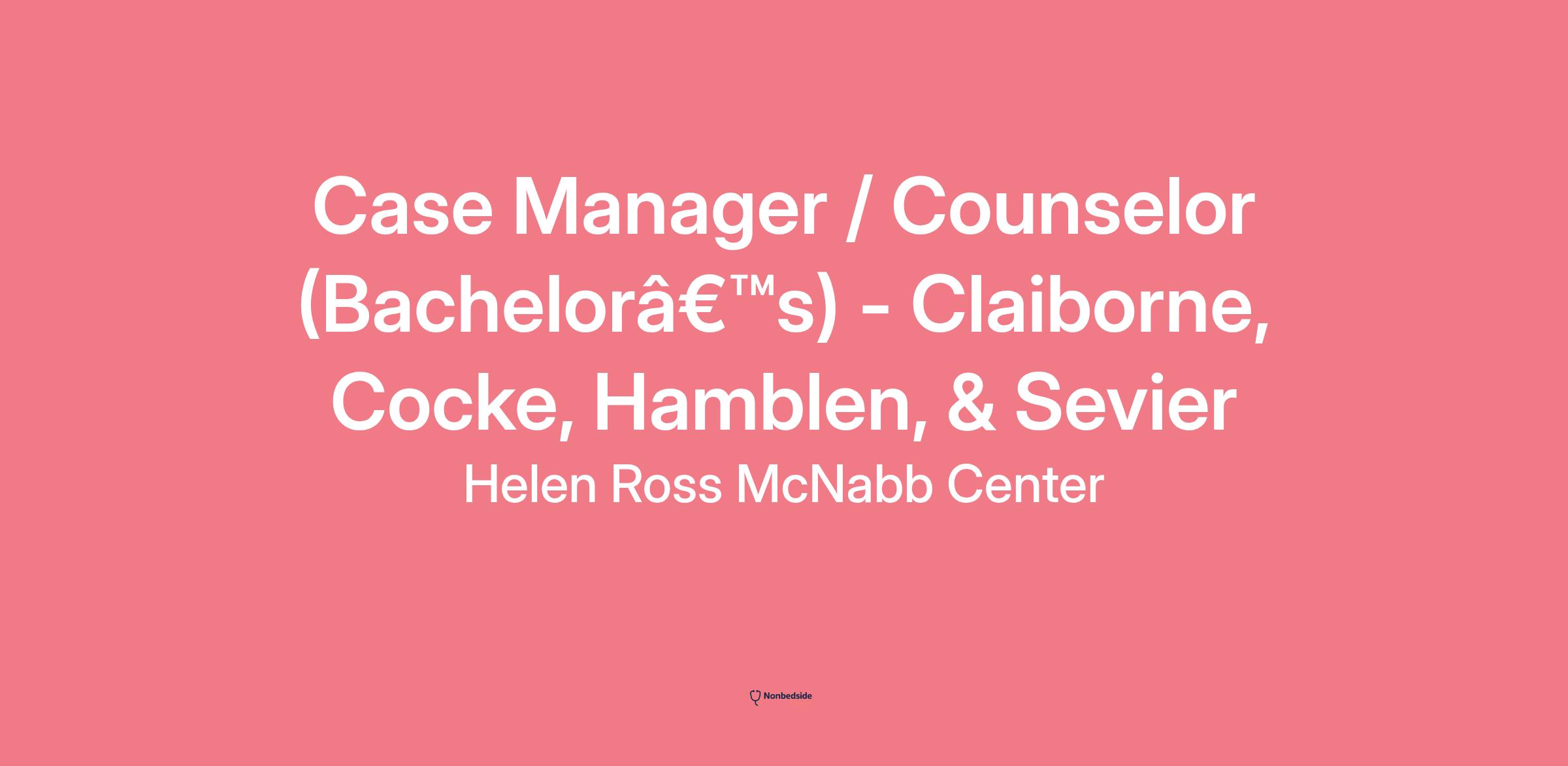 Case Manager / Counselor (Bachelor's) - Claiborne, Cocke, Hamblen, & SevierNow Hiring:Case Managers, Specialists & Counselors (Bachelor's Level)Location: Claiborne, Cocke, Hamblen, & Sevier Counties, TennesseeStart Your Career with Purpose “ Join the McNabb Center Today!Are you ready to make a real difference in the lives of others? The McNabb Center is actively seeking passionate, dedicated professionals to join our team across East Tennessee. With a range of opportunities available, now is the perfect time to begin or grow your career in mental health and social services.We are currently accepting applications for bachelor's level positionsin the following areas:Non-Residential PositionsJail to Work Case ManagerLocation: Hamblen CountyStarting Pay: $18.97 Based on education and experienceKey Responsibilities:Provide case management services using a social model approach to adult women incarcerated in the Hamblen County JailFacilitate weekly case management sessions and therapeutic groupsOffer information, referral, advocacy, and coordination with community agencies and referral sourcesParticipate in weekly treatment team meetingsMonitor medication, provide crisis intervention and therapeutic support as neededMaintain complete and timely documentation per agency and CARF standardsEmbrace recovery-oriented values including empowerment, normalization, rehabilitation, and continuity of careParticipate in direct supervision and work a flexible schedule based on program needsTypical Work Environment:Services are provided both in the office, Jail to Work group rooms, and in the community. Clients may also participate in activities and groups in designated recovery home settings.Education Requirement: Bachelor's degree in a social services or behavioral health-related fieldHealth Link Care CoordinatorLocation: Cocke, Claiborne, Hamblen, & Sevier CountiesStarting Pay: $18.97 / hourKey Responsibilities:Coordinate care across behavioral, physical, and community-based providersDevelop and implement individualized intervention plansServe as liaison between schools, homes, and healthcare systemsProvide holistic care and advocacy across all life domainsEducation Requirement: Bachelor's degreeGeneral Requirements & Additional InformationDriver's license and reliable personal vehicle required for most positionsTravel requirements and on-call responsibilities vary by rolePRN (as-needed) opportunities availableSalary is based on education, experience, licensure, and client population servedApplicants selected for further consideration may be contacted via phone, email, or text by a McNabb Center hiring managerSome positions may require an F-Endorsement license for transporting clientsReady to make a meaningful impact?Apply today and help us continue Improving the lives of the people we serve.EOE McNabb Center is an Equal Opportunity Employer. The Center provides equal employment opportunities to all employees and applicants for employment and prohibits discrimination and harassment of any type without regard to race, color, religion, age, sex, national origin, disability status, genetics, protected veteran status, sexual orientation, gender identity or expression, or any other characteristic protected by federal, state or local laws. This policy applies to all terms and conditions of employment.Job Description This job description is not intended to be all-inclusive; and employee will also perform other reasonably related job responsibilities as assigned by immediate supervisor and other management as required. This organization reserves the right to revise or change job duties as the need arises. Moreover, management reserves the right to change job descriptions, job duties, or working schedules based on their duty to accommodate individuals with disabilities. This job description does not constitute a written or implied contract of employment.Background Checks McNabb Center conducts background checks, driver's license record, degree verification, and drug screens at hire. Employment is contingent upon clean drug screen, background check, and driving record. Additionally, certain programs are subject to TB Screening and/or testing.PIf0f9c5f7410d-30134-34138907