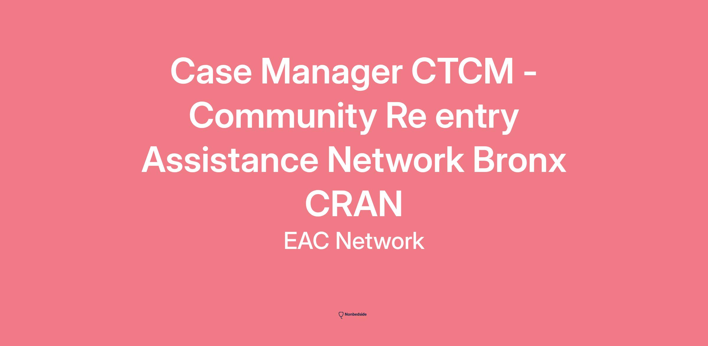 Join EAC Network as a full‑time Case Manager (CTCM) supporting behavioral health and justice‑involved clients in the Bronx Community Reentry Assistance Network. Some travel to Riker’s Island is required.