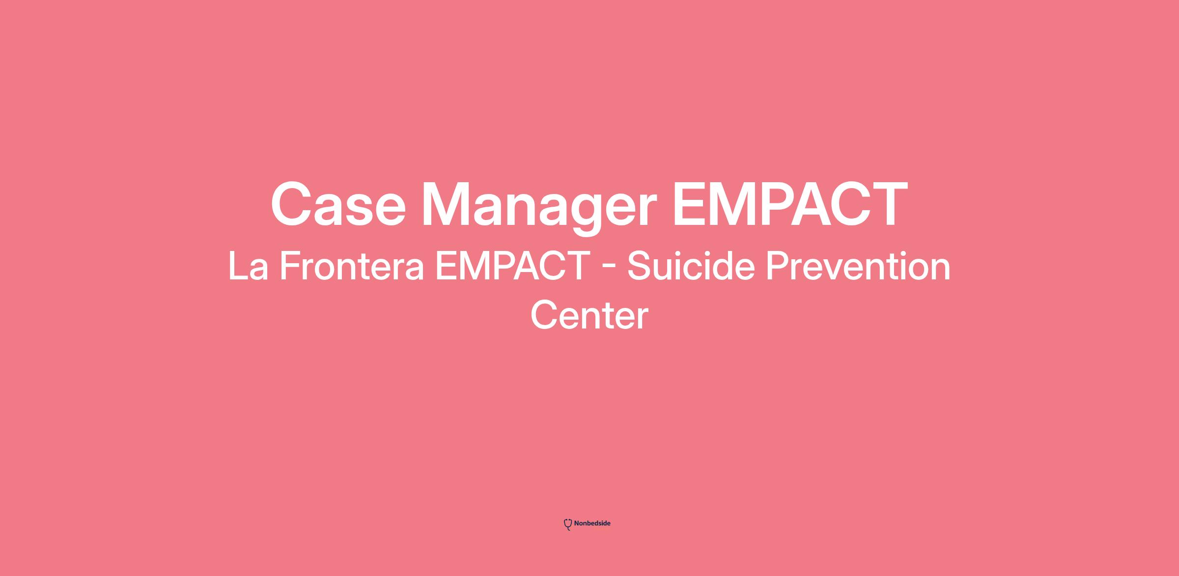 EMPACT- Suicide Prevention Center, part of the La Frontera family, is an industry leading non-profit organization dedicated to providing valued community services and resources for behavioral health counseling, crisis intervention, and suicide prevention since 1987. We are an EEO/AA Employer.