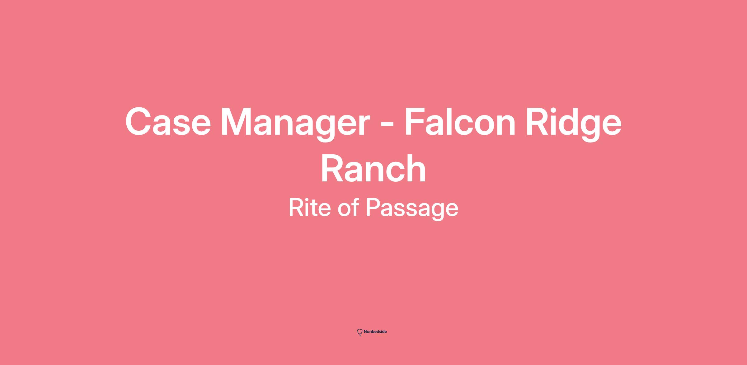 Join to apply for the Case Manager - Falcon Ridge Ranch role at Rite of Passage .
