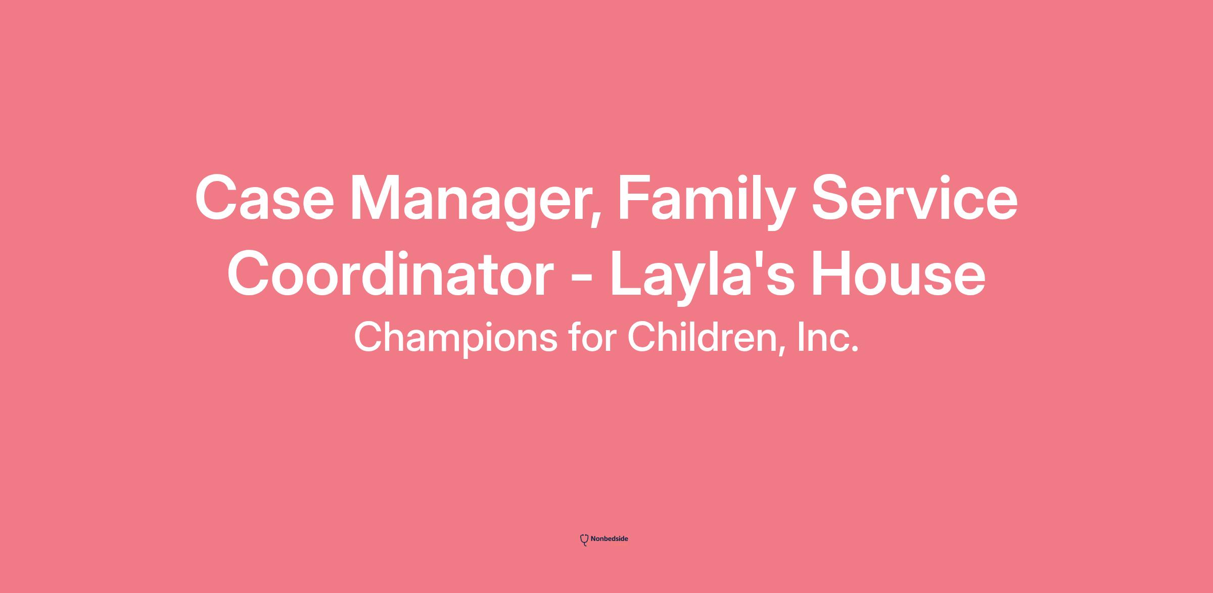 Champions for Children, Inc. is an equal opportunity employer. Hiring, promotion, transfer, compensation, benefits, discipline, termination and all other employment decisions are made without regard to race, color, religion, sex, sexual orientation, gender identity, age, disability, national origin, citizenship/immigration status, veteran status or any other protected status. Participates in E-Verify. DrugFree Workplace