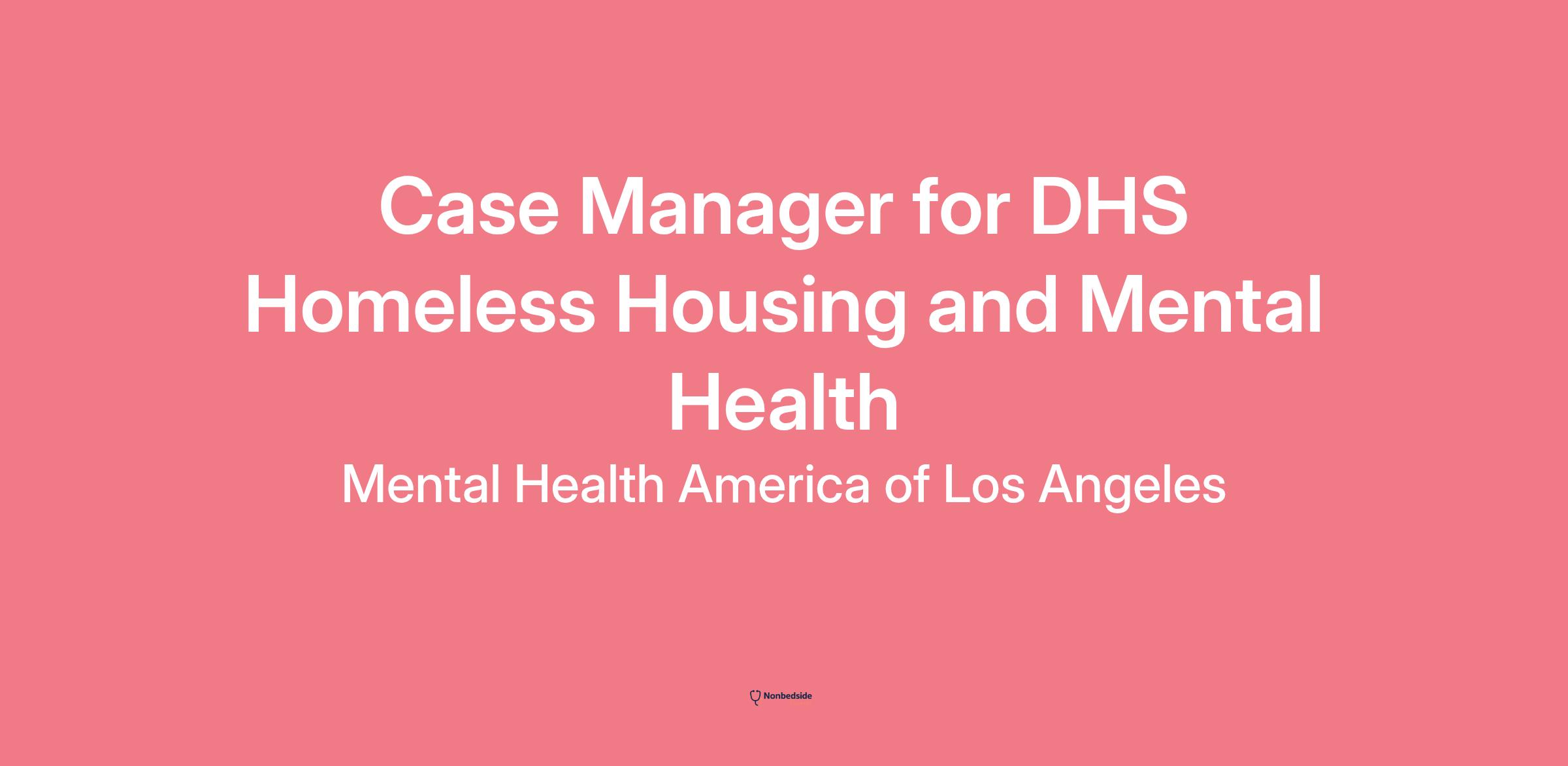 Summary: Under the general supervision of the Program Manager provide high quality Intensive Case Management Services (ICMS) to clients eligible for permanent housing through the Department of Health Services’ (DHS) Housing for Health (HFH) and other programs. Provide a client-centered approach and provide excellent customer service that is sensitive to the challenges that people experiencing homelessness with a range of medical and behavioral health issues face as they move into and maintain permanent supportive housing. Employ a “whatever it takes” approach to assist clients in their transition from homelessness to permanent housing.