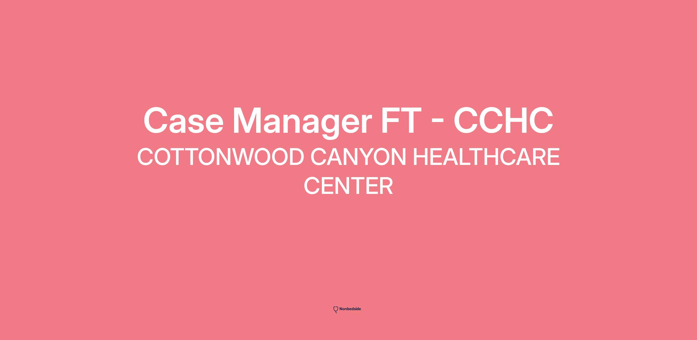 Overview Join to apply for the Case Manager FT - CCHC role at COTTONWOOD CANYON HEALTHCARE CENTER .