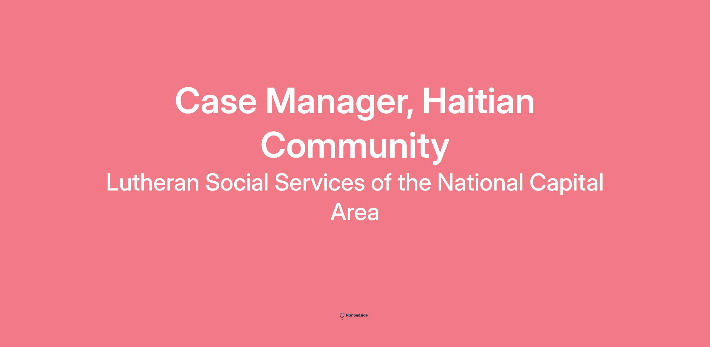 Overview Be among the first 25 applicants. Case Manager - Haitian Community at Lutheran Social Services of the National Capital Area (LSSNCA) welcomes a dedicated professional to guide and advocate for Haitian families in Greenbelt, MD.