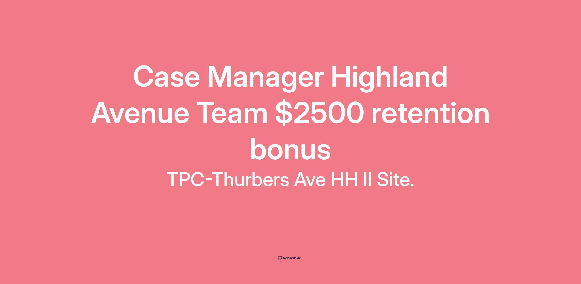 Case Manager Highland Avenue Team $2500 retention bonus This position is eligible for $2500 retention bonus.