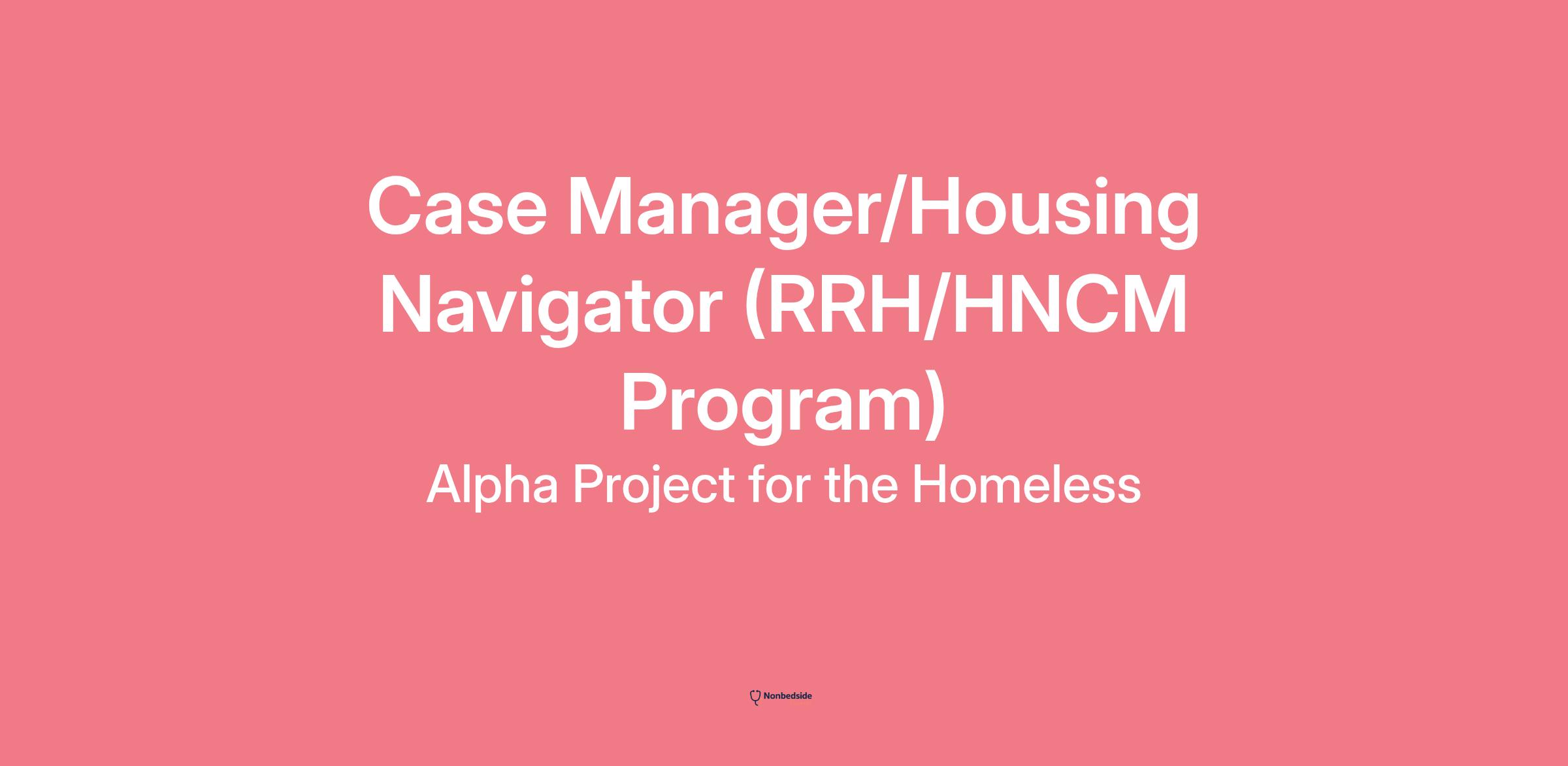 BENEFITS: Alpha Project offers a generous benefits package, including 14 paid holidays, paid vacation, sick leave, and 100% employer-paid medical, dental, vision premium, and group life insurance.