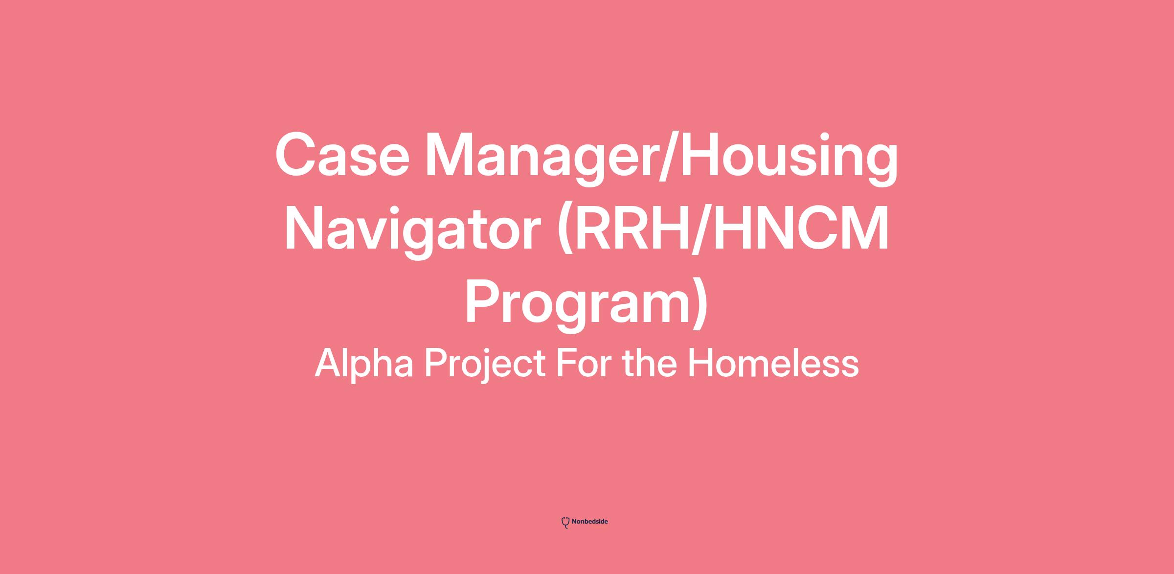 Join to apply for the Case Manager/Housing Navigator (RRH/HNCM Program) role at Alpha Project For the Homeless