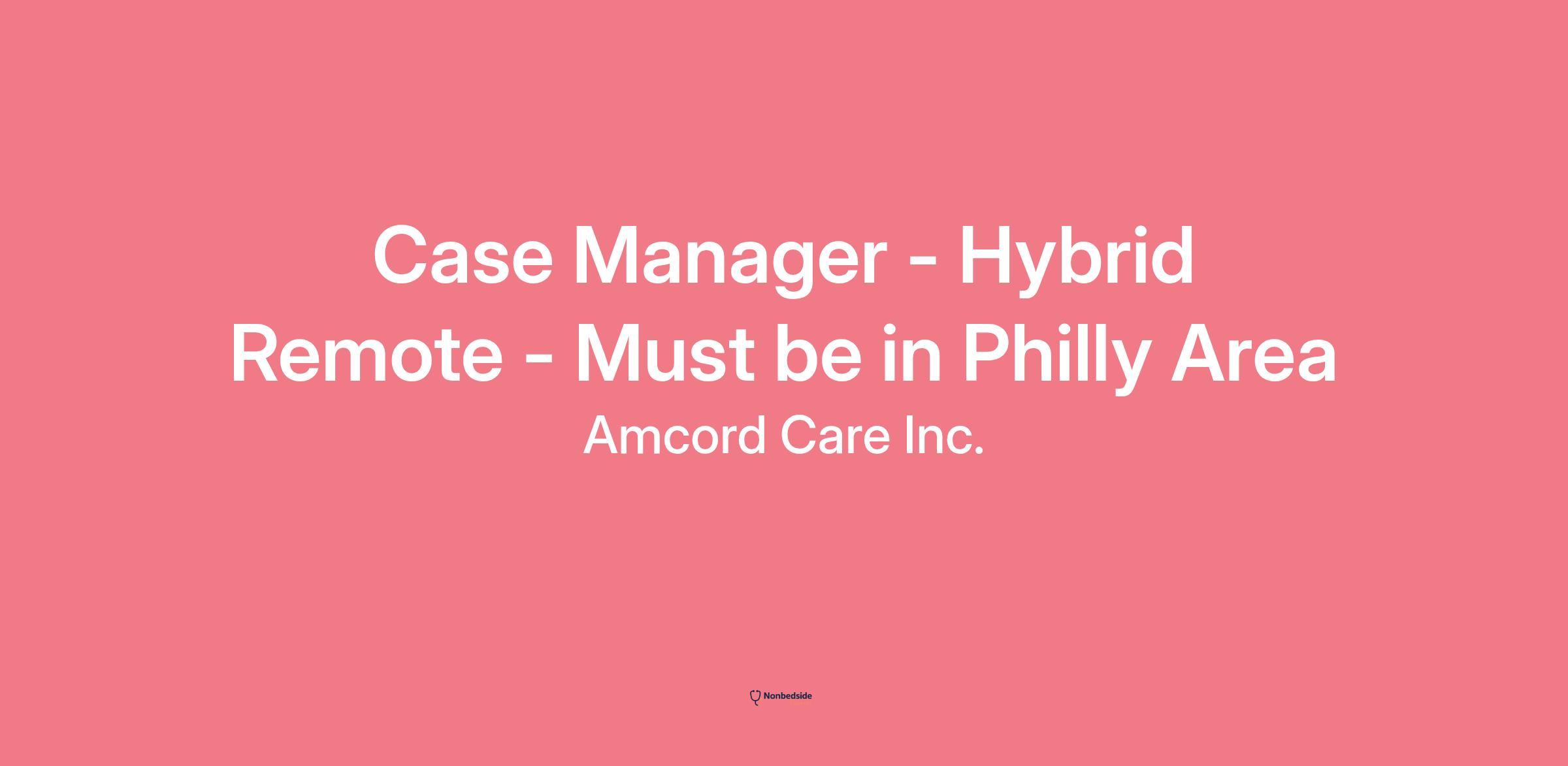 Case Manager - Hybrid Remote - Must be in Philly Area