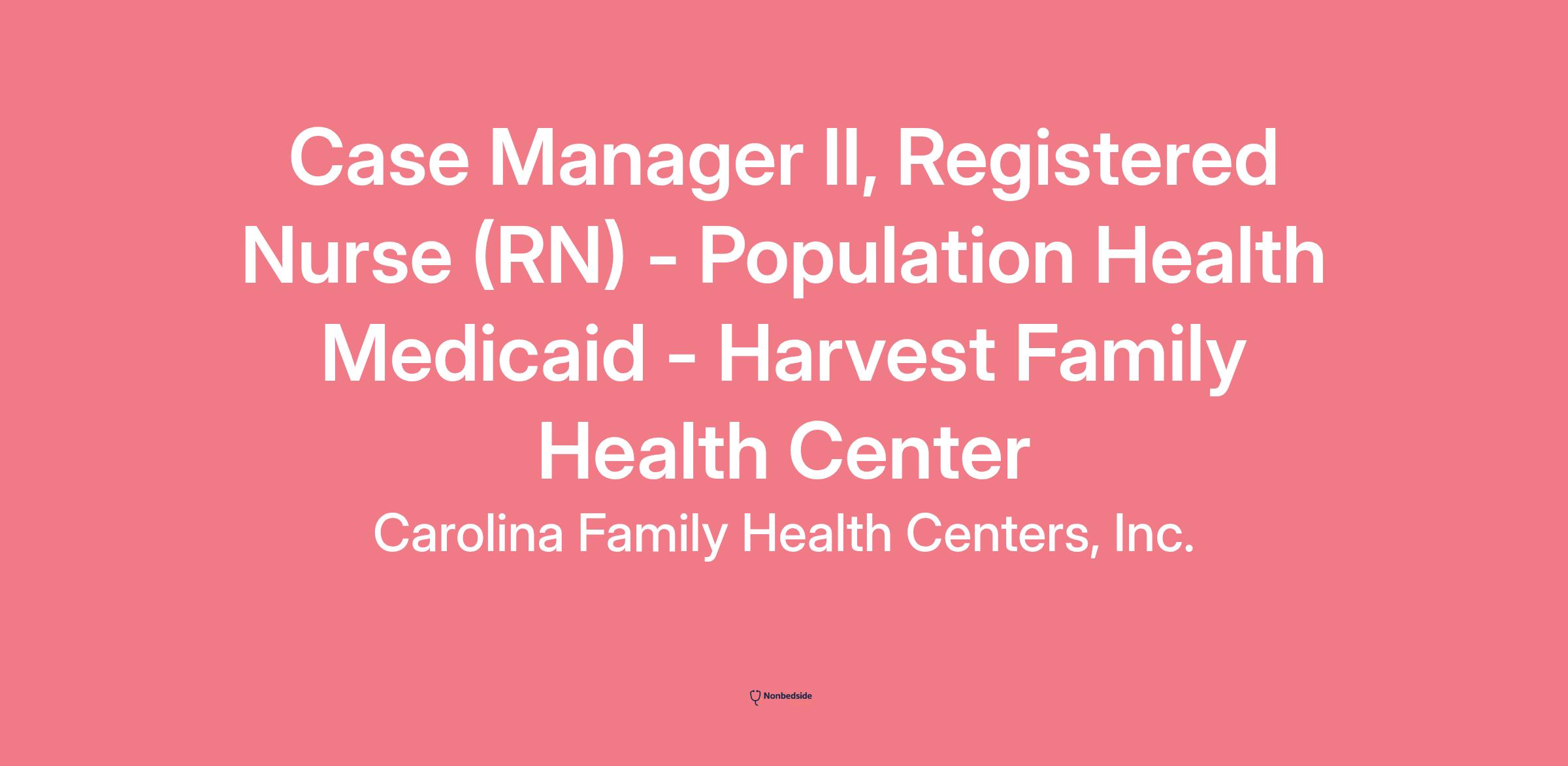 Overview Case Manager II, Registered Nurse (RN) - Population Health Medicaid - Harvest Family Health Center at Carolina Family Health Centers, Inc.