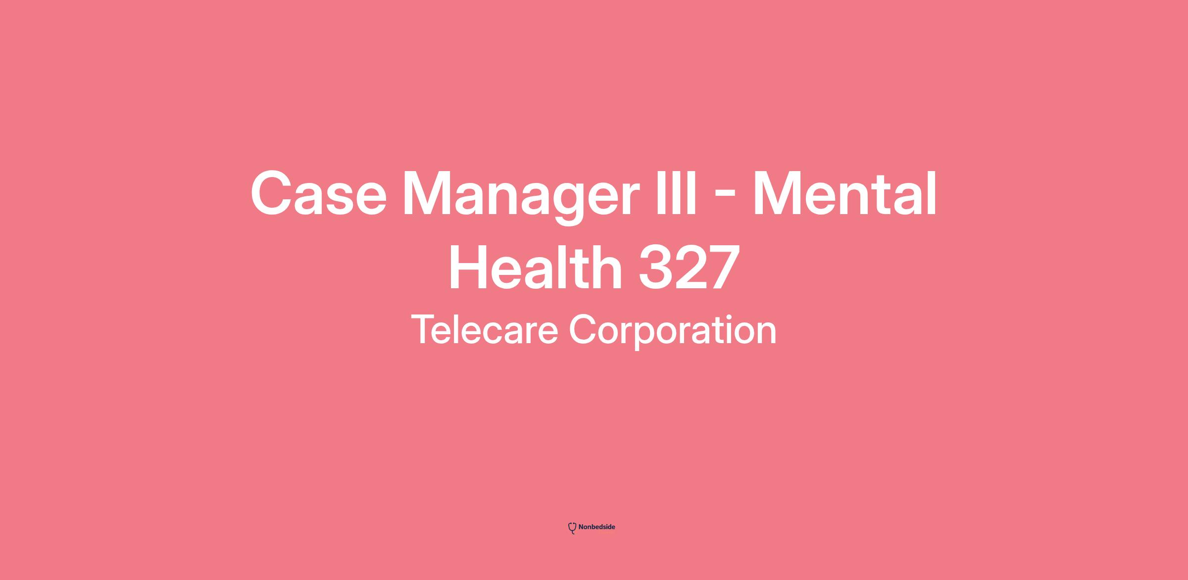 Overview Join to apply for the Case Manager III - Mental Health 327 role at Telecare Corporation.