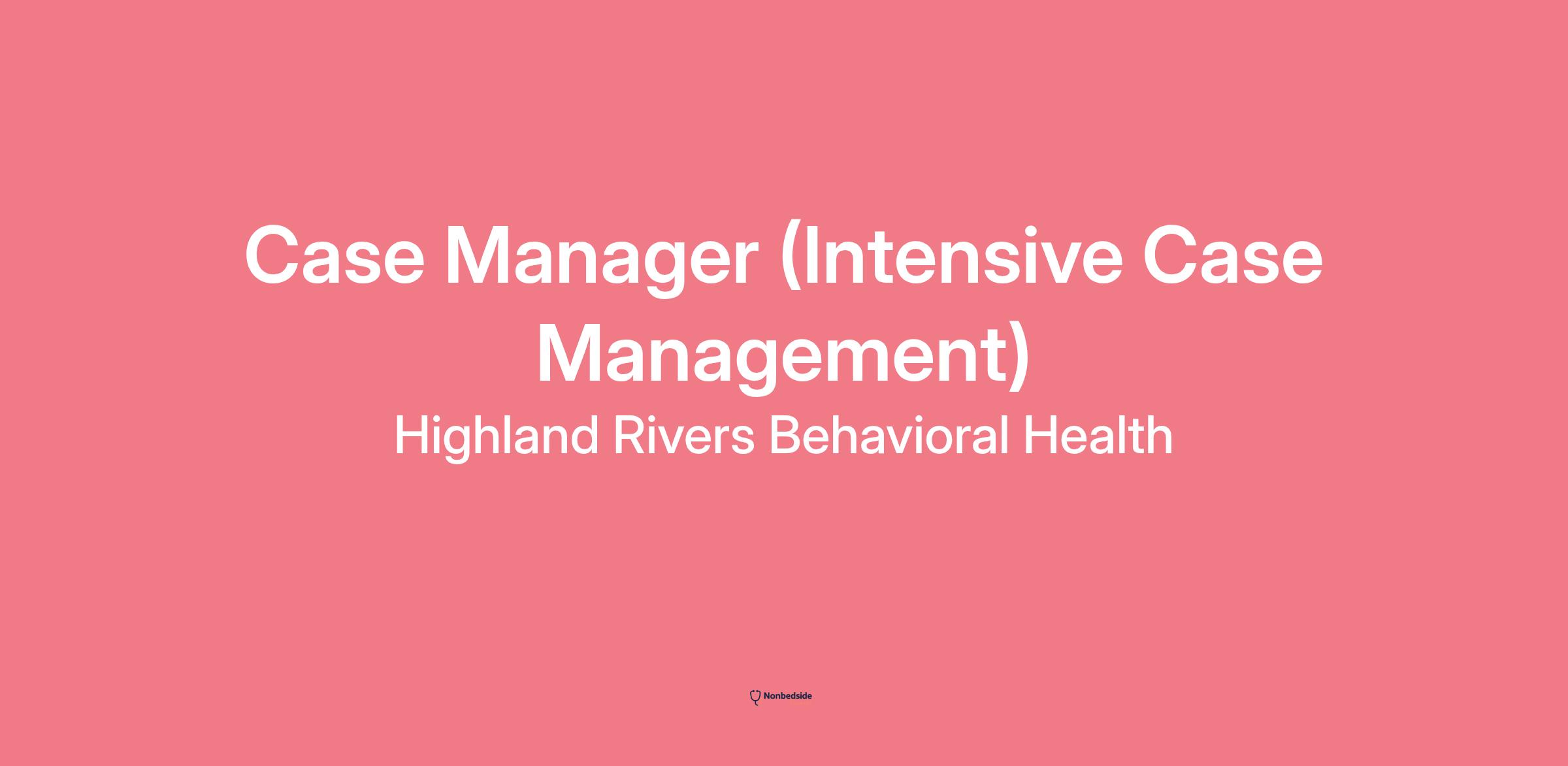 Join to apply for the Case Manager (Intensive Case Management) role at Highland Rivers Behavioral Health .