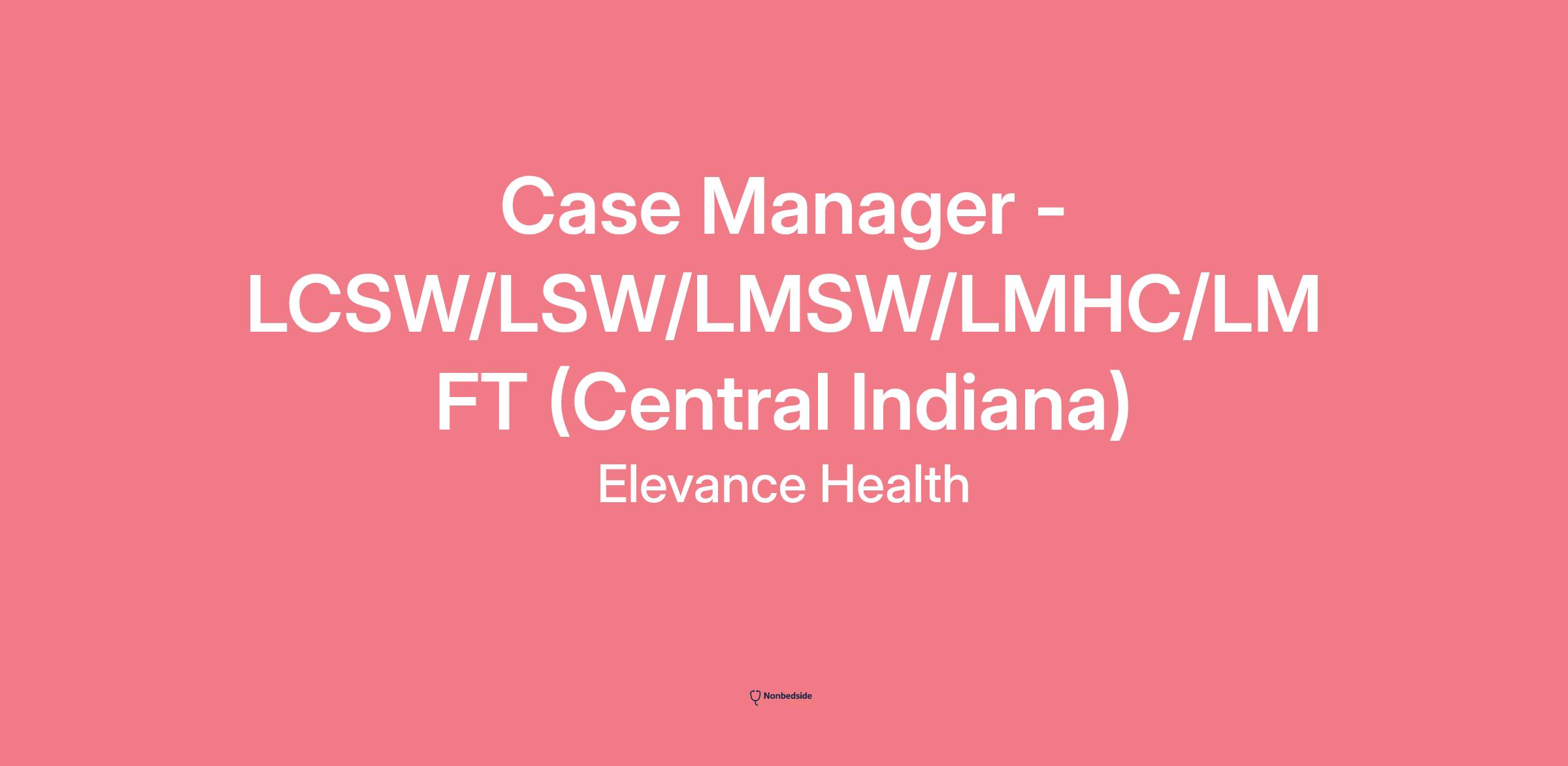 Join to apply for the Case Manager -LCSW/LSW/LMSW/LMHC/LMFT (Central Indiana) role at Elevance Health