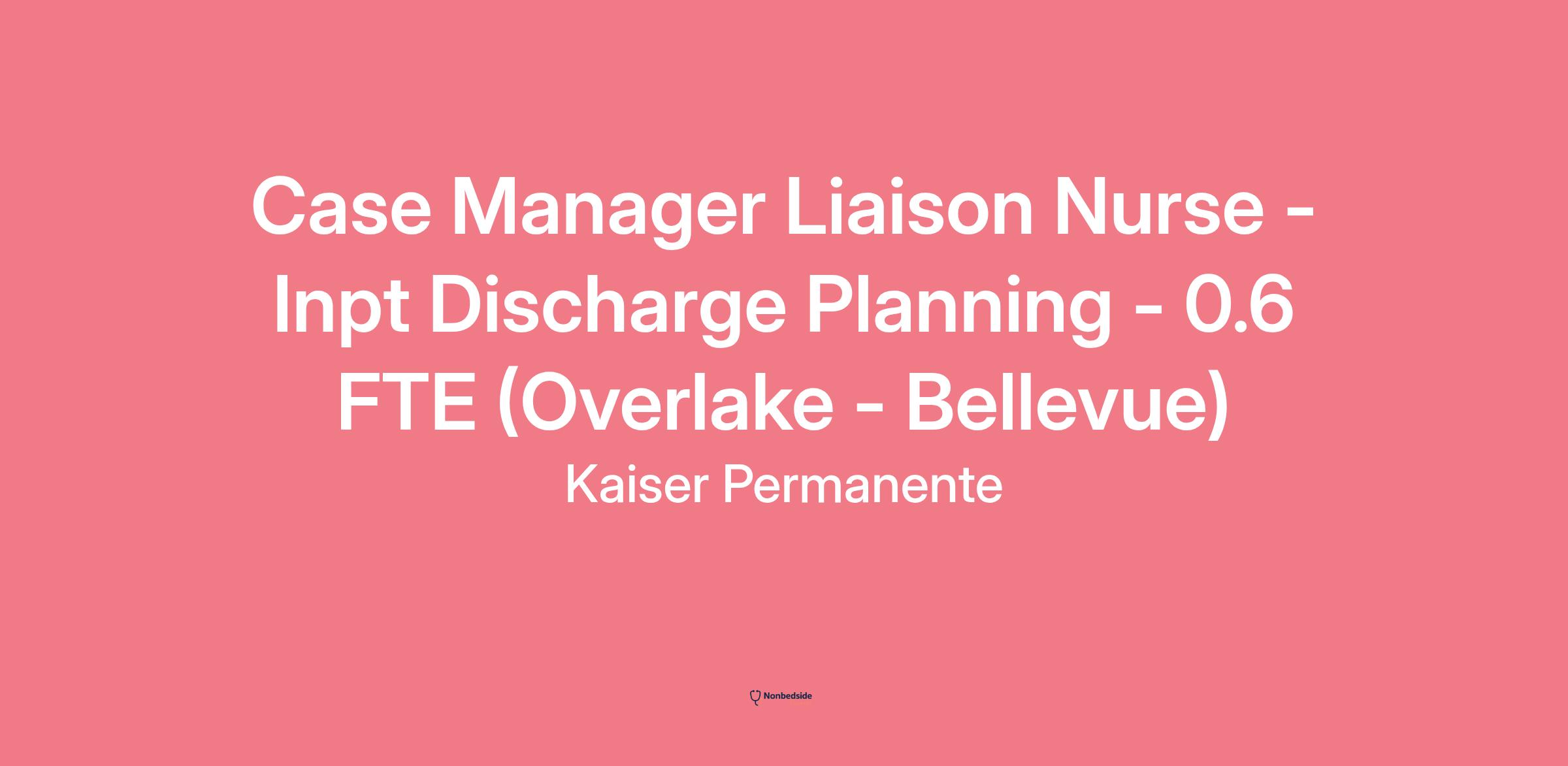 RN CASE MANAGER LIAISON NURSE - INPATIENT DISCHARGE PLANNING - ONSITE: OVERLAKE - BELLEVUE