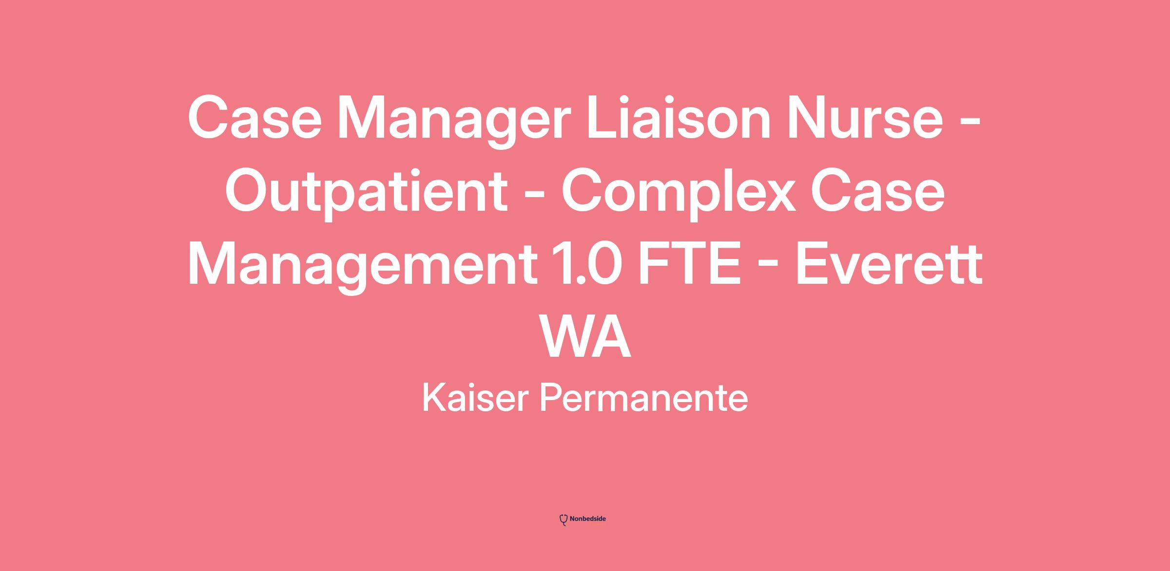 Case Manager Liaison Nurse - Outpatient - Complex Case Management 1.0 FTE - Everett WA