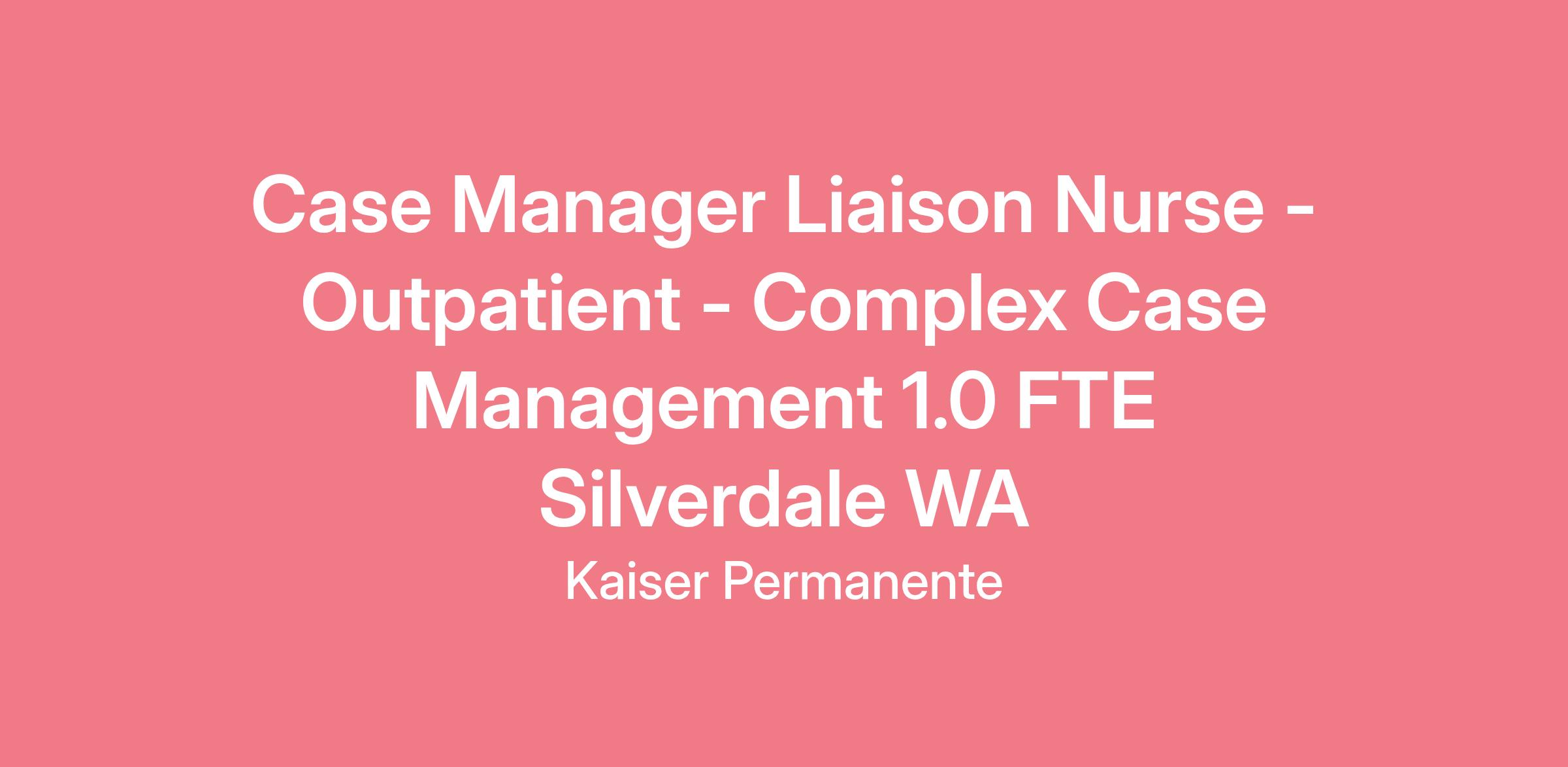 The Care Manager will work in two (2) settings on a periodic rotating schedule, planning the discharges and follow up care for Kaiser Foundation Health Plan of Washington patients hospitalized at a nearby network facility and carrying a case load of patients in one of the Kaiser Foundation Health Plan of Washington medical centers. Some weekends and holidays are required, and scheduled days of the week are variable. Primary responsibility is to focus on achievement of optimal patient health care outcomes while ensuring appropriate utilization of health care resources. Working closely with primary care teams, specialty care teams and medical providers, the Liaison Nurse will establish a collaborative plan of care to assure adherence to the medical plan, improvement in functional status, and improved ability to self-manage. Serves as the liaison across the internal KFHPW care continuum and between KFHPW and all externally contracted providers, facilities, and resources and provides feedback to the organization regarding the service and quality of contracted services. The Liaison Nurse collects data and provides input to leadership regarding issues or concerns related to utilization, cost, quality, service and care delivery to patients.