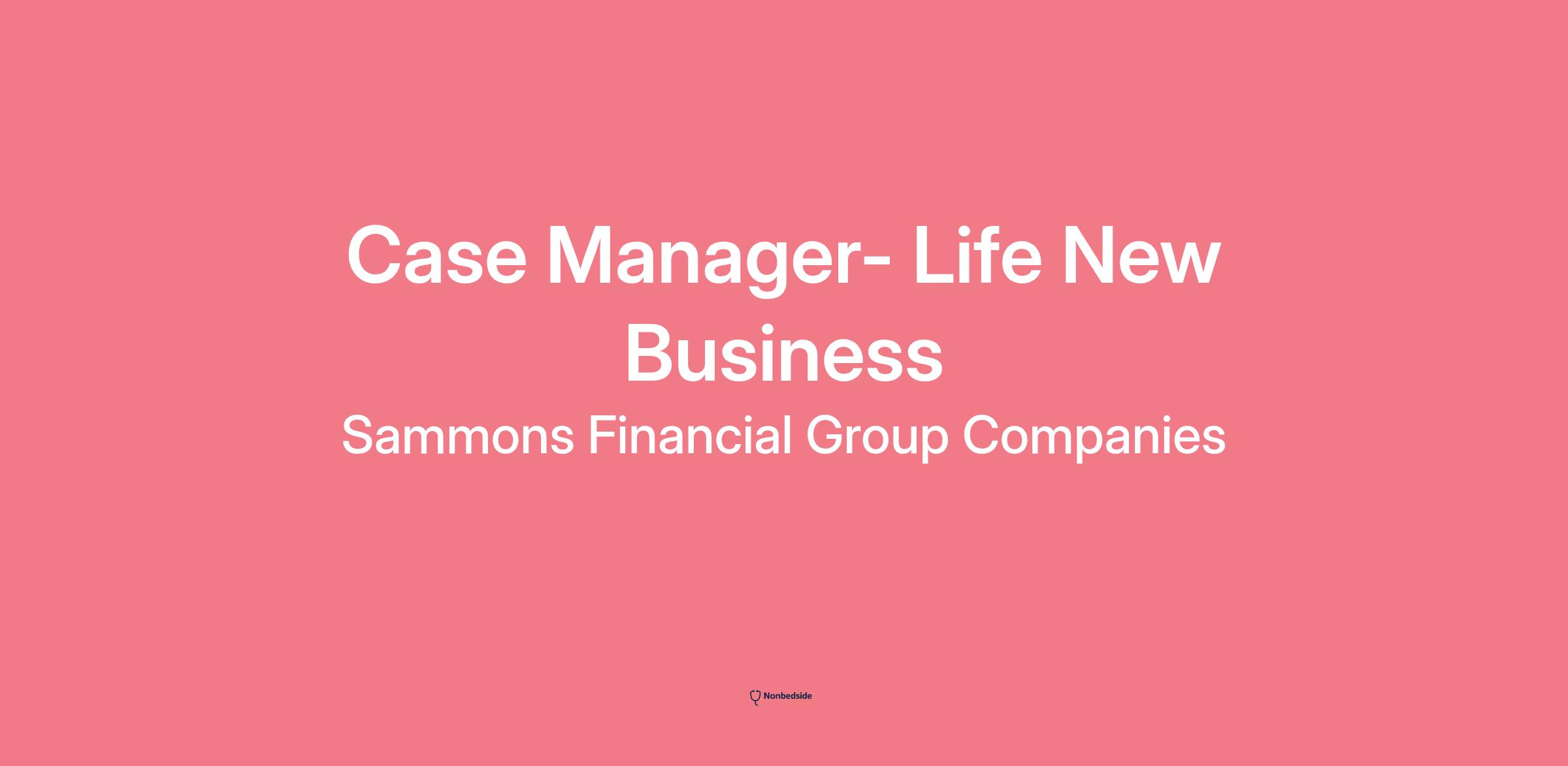 Case Manager – Life New Business at Sammons Financial Group Companies. Provide professional, accurate and timely service to agents, distribution partners and internal and external customers, with a focus on efficient and effective end‑to‑end processes. Work with complex computer systems while maintaining high quality work. Responsibilities include application review, case management, quality assurance, inbound/outbound call support and guidance.