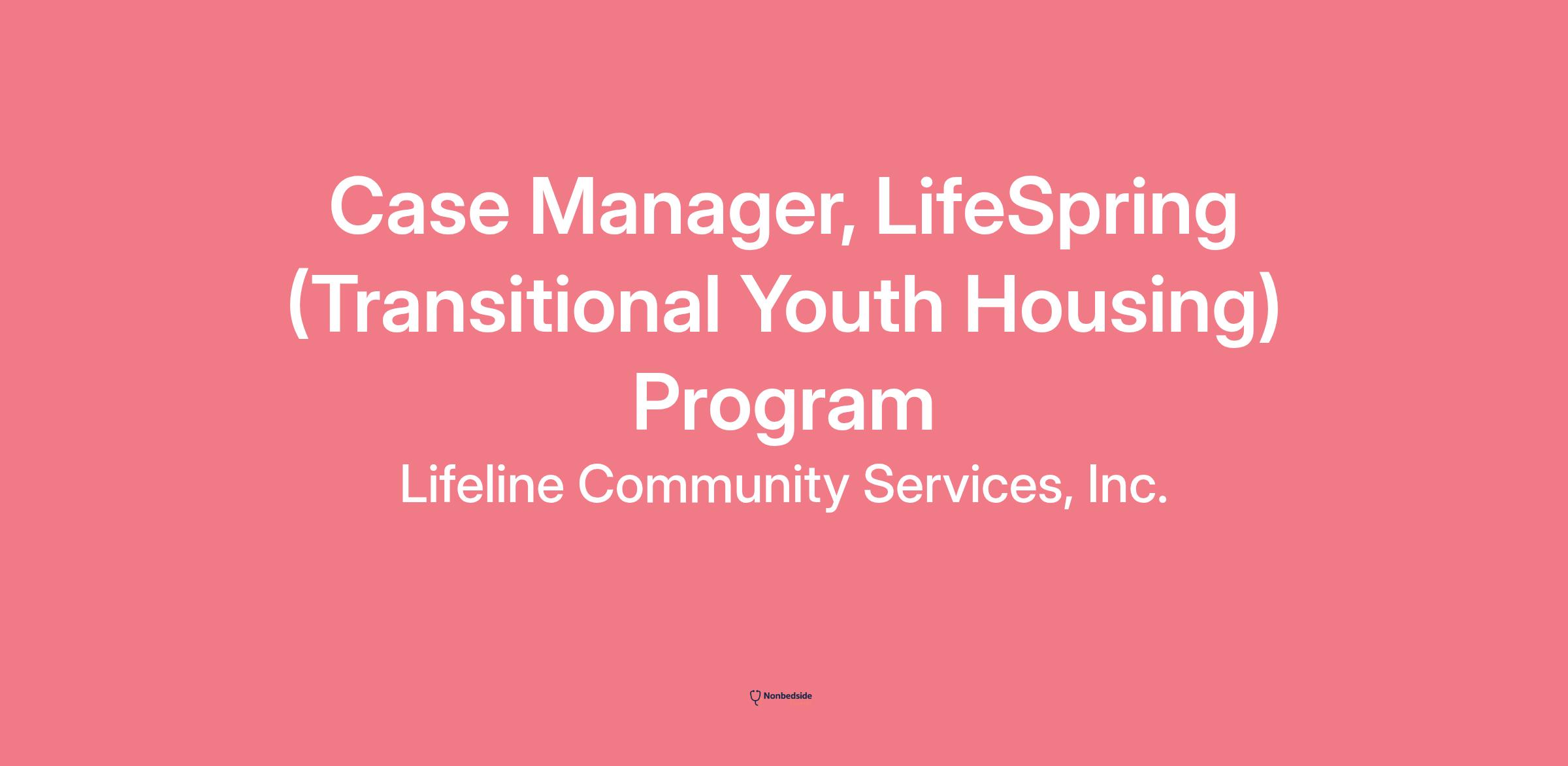 Under the general supervision of the LifeSpring Program Manager, the Case Manager provides intensive case management and independent living skills development to foster youth and probation youth transitioning into independent living. The role assists youth in developing skills, obtaining employment, pursuing educational goals, and creating life plans that support independence.