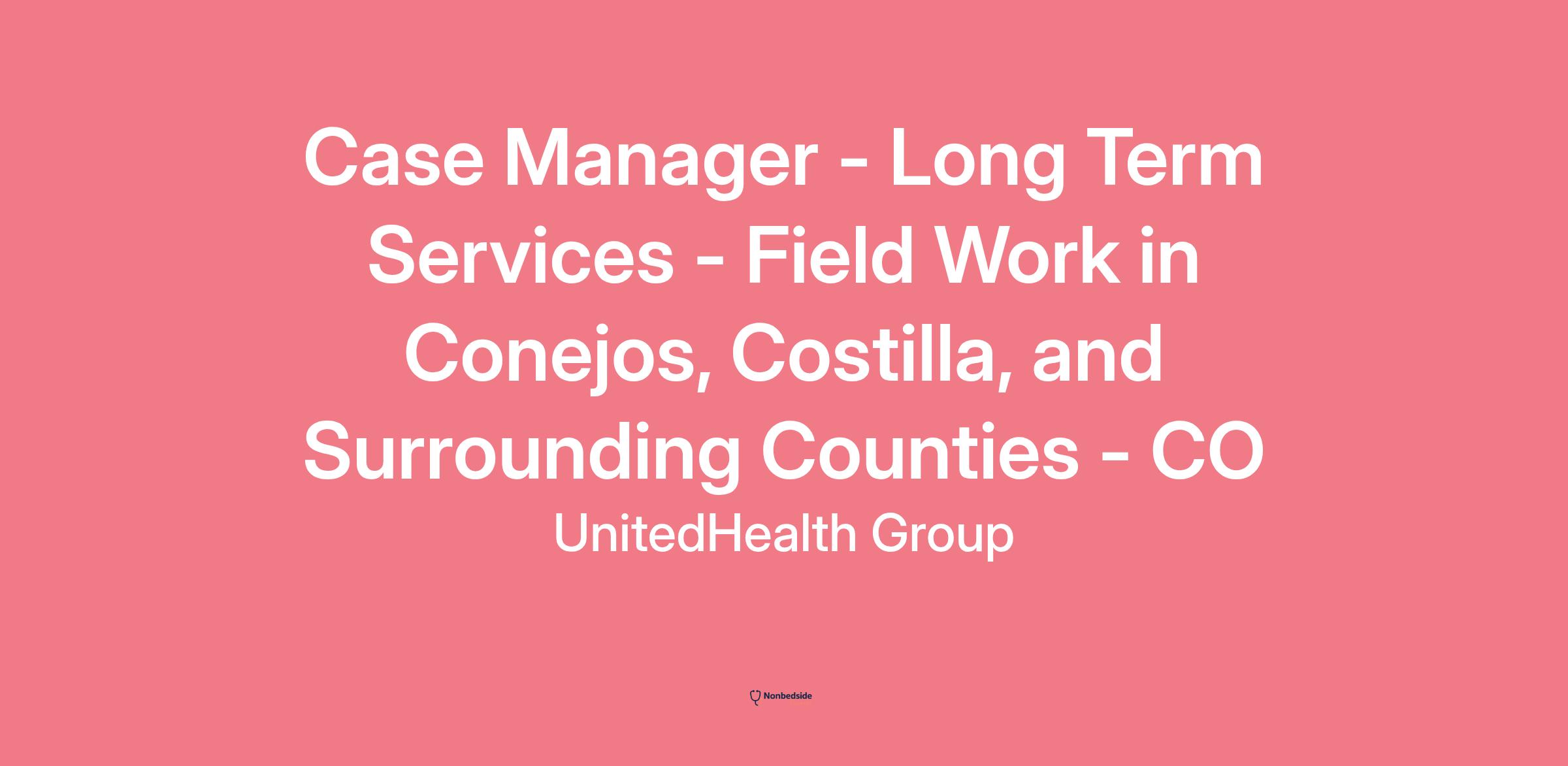 Expect to spend about 75% of your time in assigned your territory visiting our members in their homes or in long-term care facilities. You'll need to be flexible, adaptable and, above all, patient in all types of situations. Target territory would be one of the following Colorado counties: Conejos, Costilla, and surrounding Counties.