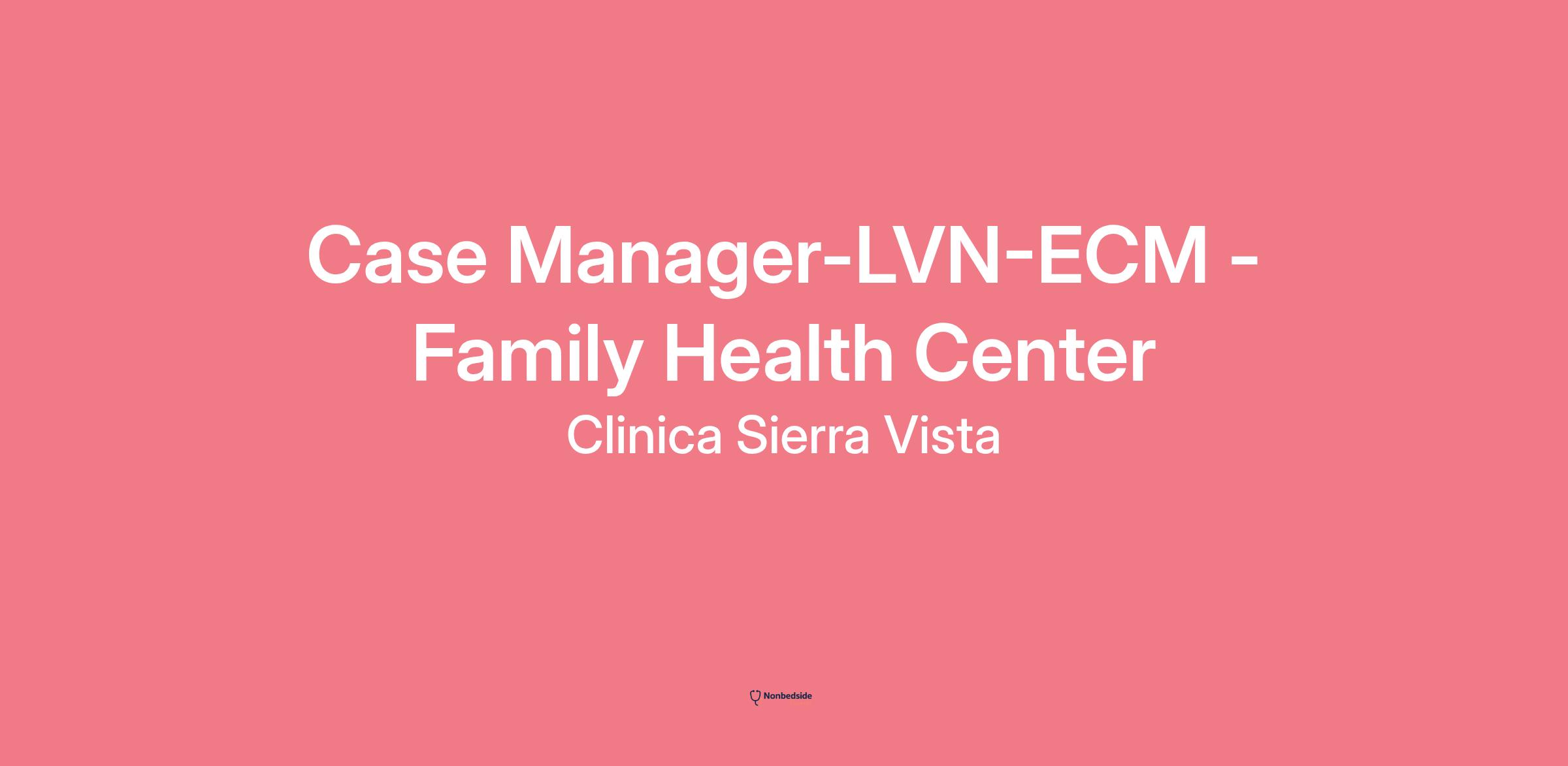 Case Manager-LVN-ECM - Family Health Center Join to apply for the Case Manager-LVN-ECM - Family Health Center role at Clinica Sierra Vista