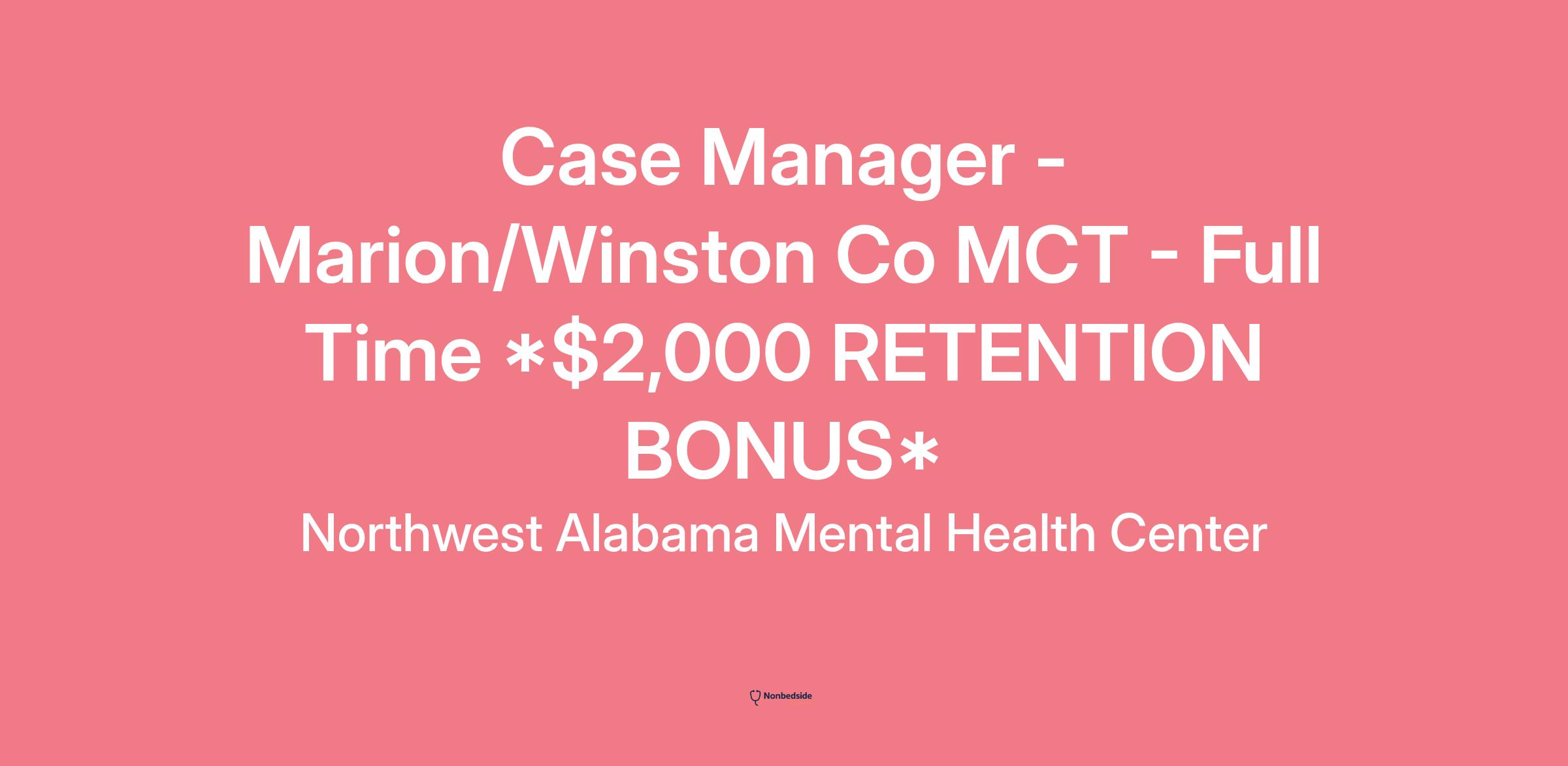 *$2,000 RETENTION BONUS* The employee will receive half after completing 6 months of employment and the remaining half after 1 year of employment. Bachelor-level Case Manager Position. Must be willing to be trained to administer medications. This position will be discussed in more depth during the interview. Requirements :