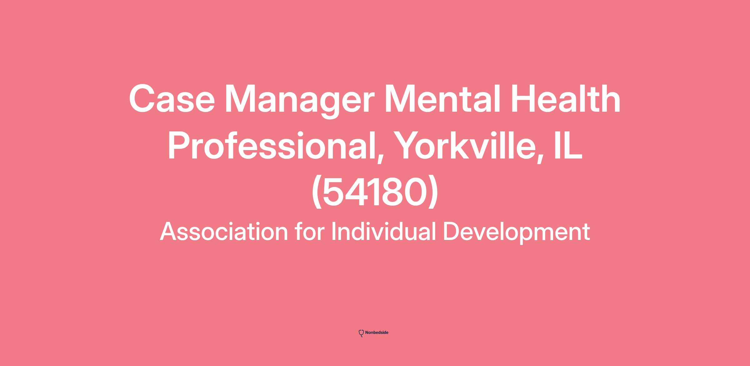Overview The Association for Individual Development (AID) is a non-profit organization whose mission is to empower people with physical, developmental, intellectual, mental health challenges; those who have suffered a trauma; and those at risk, to enjoy lives of dignity and purpose. We are looking for a Case Manager Mental Health Professional who demonstrates this mission and wants to work for an organization that makes a difference in the community.