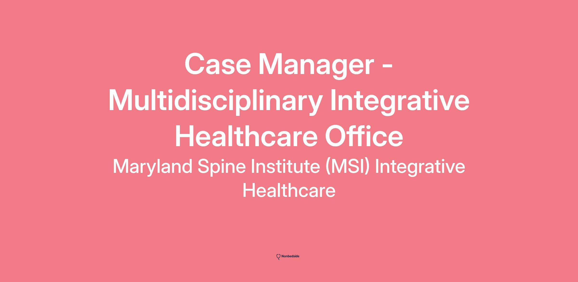 Job Title: Case Manager – Multidisciplinary Integrative Healthcare Office (Sales Experience Required)