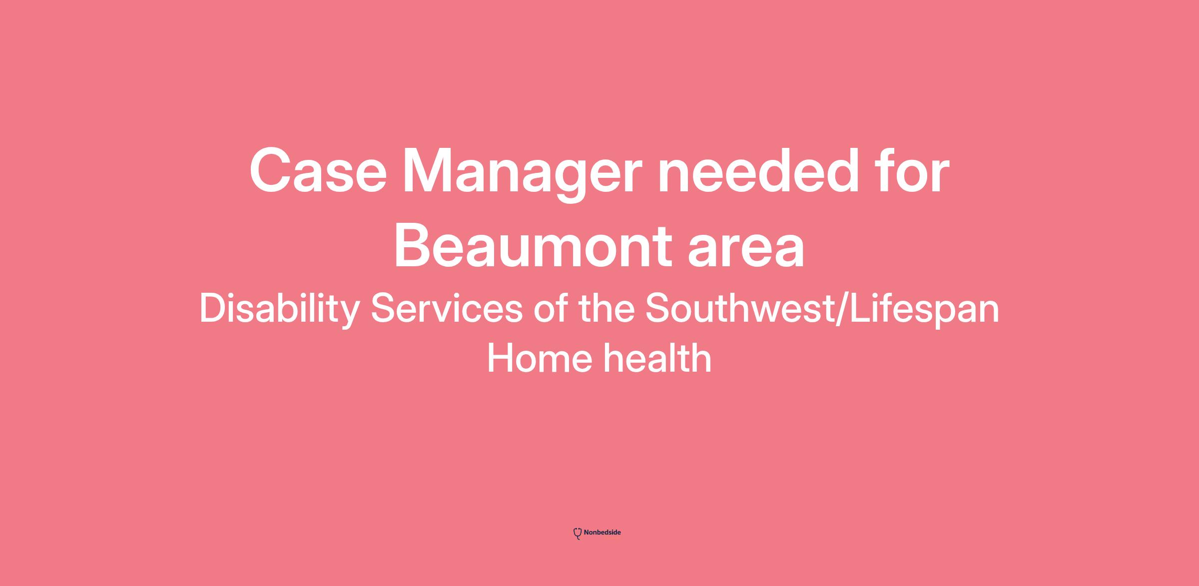 Join to apply for the Case Manager needed for Beaumont area role at Disability Services of the Southwest/Lifespan Home health