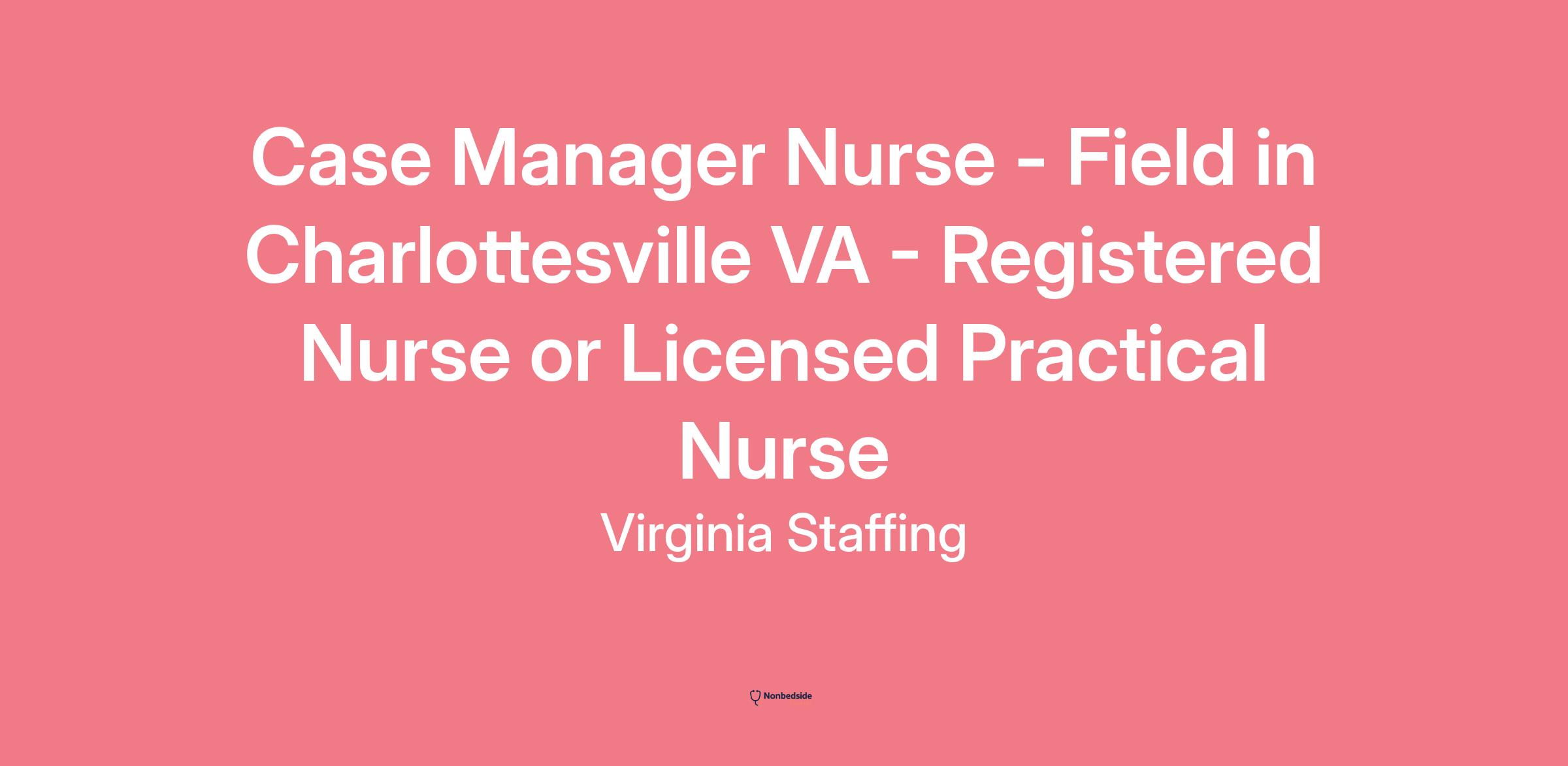 At CVS Health, we're building a world of health around every consumer and surrounding ourselves with dedicated colleagues who are passionate about transforming health care. As the nation's leading health solutions company, we reach millions of Americans through our local presence, digital channels and more than 300,000 purpose-driven colleagues caring for people where, when and how they choose in a way that is uniquely more connected, more convenient and more compassionate. And we do it all with heart, each and every day. Must reside in or near Charlottesville VA Position Summary This Case Management position is with Aetna's Long-Term Services and Supports (LTSS) team and is a field-based position out of Charlottesville Virginia. The requirements is for candidates to hold a Virginia RN or LPN License, and travel up to 50-75% of the time to meet with members face to face. The Nurse Case Manager is responsible for evaluating and coordinating care for members to improve their overall health and wellness. This includes assessing medical needs and eligibility, developing care plans to address short- and long-term health goals, using clinical tools and data to guide decisions, coordinating services across programs and providers, addressing complex health and social issues, reviewing claims and functional capacity, referring members to appropriate clinical resources, collaborating with supervisors and multidisciplinary teams, ensuring compliance with policies and regulations, and engaging members through effective communication. Work Location & Travel Requirements This is a Work-at-Home (WAH) position based out of the candidate's residence in Charlottesville VA, with up to 75% field travel. The role requires a secure, HIPAA-compliant home workspace with reliable phone and hard-wired internet service. Work hours are Monday through Friday, 8 AM to 5 PM EST. Colleagues must be accessible via phone, videoconference, and email during scheduled hours and ensure that personal responsibilities, including dependent care, do not interfere with work duties. As a field-based role, the Nurse Case Manager will regularly travel to various locations including member homes, healthcare facilities (e.g., nursing homes, rehab centers), community sites, and client or company locations. Unlike office-based roles, field-based colleagues do not have a single primary worksite and may work in multiple locations throughout the week or month. Required Qualifications Candidates must reside in or near Charlottesville VA Must possess reliable transportation and be willing and able to travel up to 50-75% of the time. Mileage is reimbursed per our company expense reimbursement policy LPN/RN with current unrestricted Virginia state licensure required. 3 years Clinical Experience (Preferably in Medical-Surgical Nursing, Behavioral Health, Long term Care, etc.) 1+ years Managed Care experience. Position requires proficiency with computer skills which includes navigating multiple systems and keyboarding. Preferred Qualifications Case Management in an integrated model preferred (Waiver and IDDP-Combination of different services) Bilingual in English/Spanish Education Associates degree in Nursing Required; prefer a BSN Technology Skills Proficient in Multisystem Navigation: Comfortable using multiple monitors and systems simultaneously to streamline tasks and improve efficiency. Effective Multitasker: Skilled at talking and typing concurrently while managing various responsibilities with focus and accuracy. Basic Technical Troubleshooting: Able to set up and connect essential hardware (monitors, keyboards, etc.) and resolve common technical issues independently. Digital Collaboration & Documentation: Experienced in electronic documentation and virtual collaboration tools to support remote teamwork and communication. Highly Organized & Results-Oriented: Maintains a structured approach to work, ensuring tasks are completed on time and in alignment with performance metrics. Metric-Driven Performance: Demonstrates accountability by consistently meeting or exceeding established goals and expectations. Clean & Efficient Workspace Management: Keeps workspaces tidy and organized to support productivity and comply with professional standards Anticipated Weekly Hours 40 Time Type Full time Pay Range The typical pay range for this role is: $22.40 - $129,615.00 This pay range represents the base hourly rate or base annual full-time salary for all positions in the job grade within which this position falls. The actual base salary offer will depend on a variety of factors including experience, education, geography and other relevant factors. This position is eligible for a CVS Health bonus, commission or short-term incentive program in addition to the base pay range listed above. Our people fuel our future. Our teams reflect the customers, patients, members and communities we serve and we are committed to fostering a workplace where every colleague feels valued and that they belong. Great benefits for great people We take pride in our comprehensive and competitive mix of pay and benefits investing in the physical, emotional and financial wellness of our colleagues and their families to help them be the healthiest they can be. In addition to our competitive wages, our great benefits include: Affordable medical plan options, a 401(k) plan (including matching company contributions), and an employee stock purchase plan. No-cost programs for all colleagues including wellness screenings, tobacco cessation and weight management programs, confidential counseling and financial coaching. Benefit solutions that address the different needs and preferences of our colleagues including paid time off, flexible work schedules, family leave, dependent care resources, colleague assistance programs, tuition assistance, retiree medical access and many other benefits depending on eligibility. For more information, visit https://jobs.cvshealth.com/us/en/benefits We are