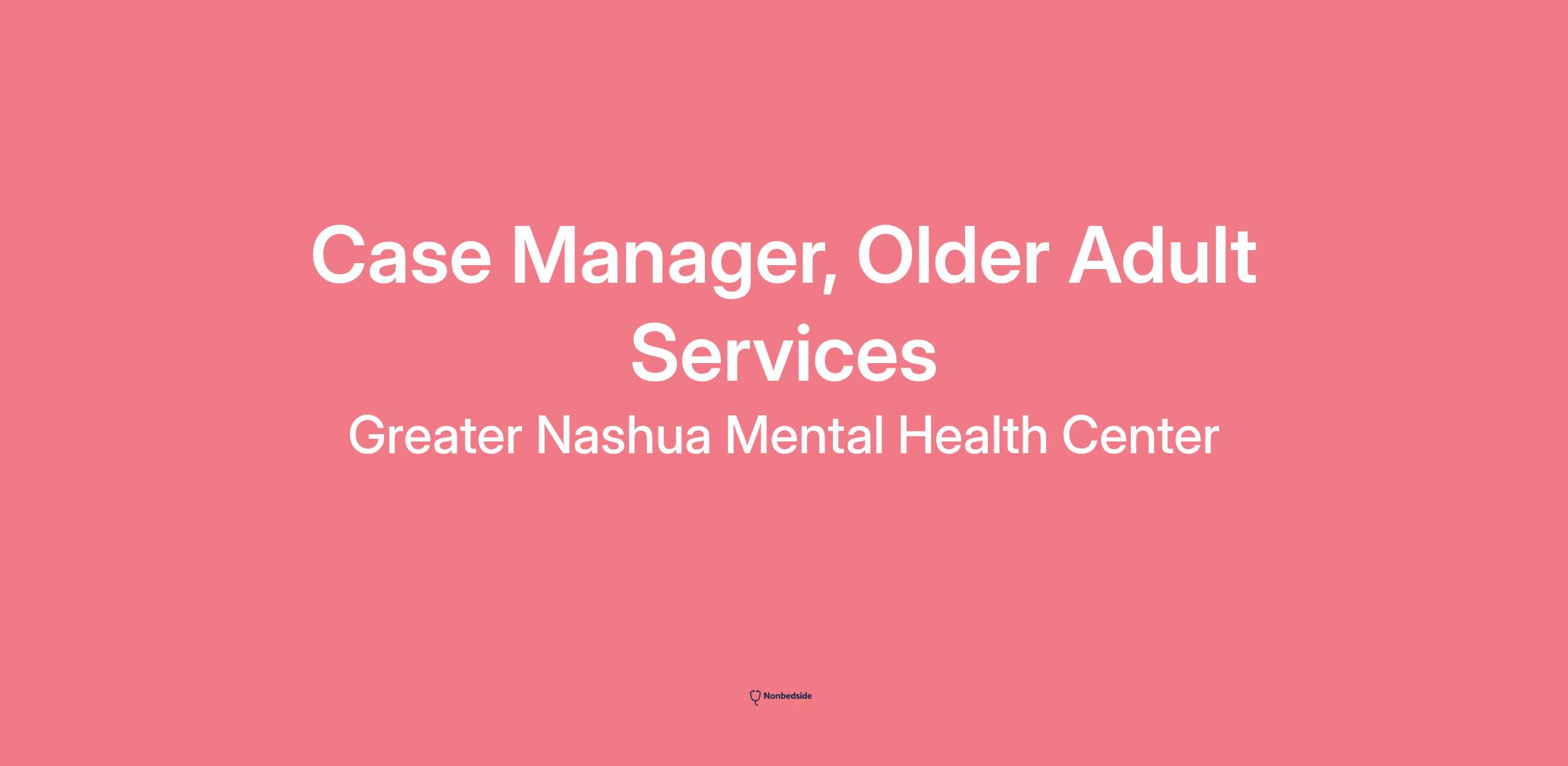 Overview Greater Nashua Mental Health is looking for a full-time Case Manager to join our Older Adult Services Team. The Case Manager provides direct support, education, referral, and outreach to a caseload of adults diagnosed with severe mental illness. The Case Manager meets with individuals in their natural environments and provides case management services necessary to facilitate empowering clients to lead full and satisfying lives.
