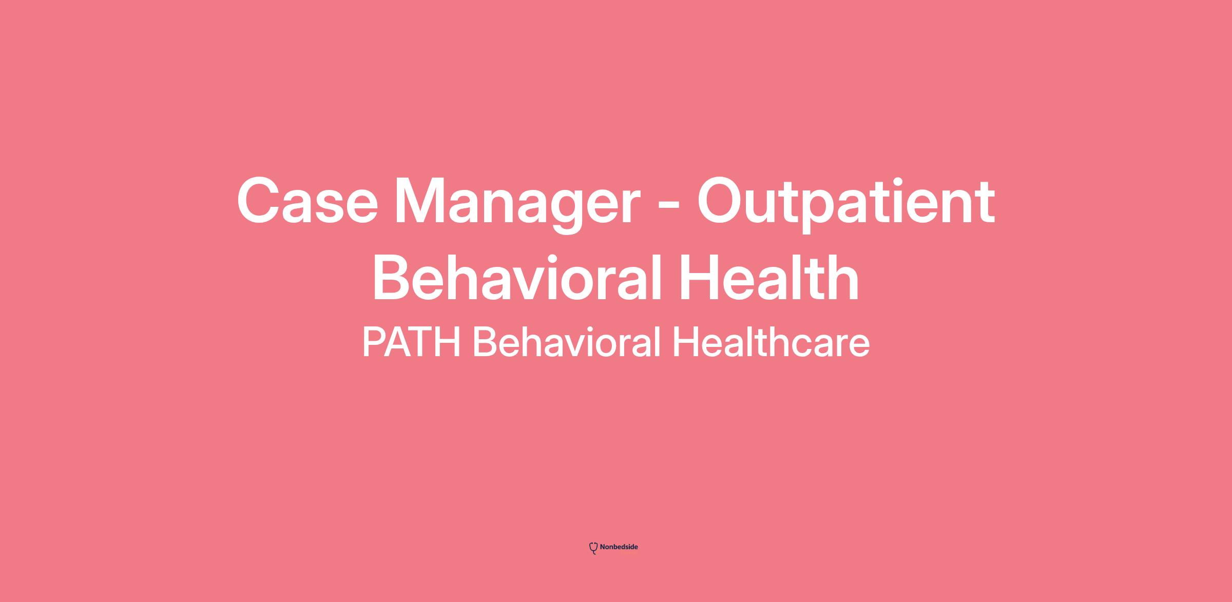 Join to apply for the Case Manager - Outpatient Behavioral Health role at PATH Behavioral Healthcare .