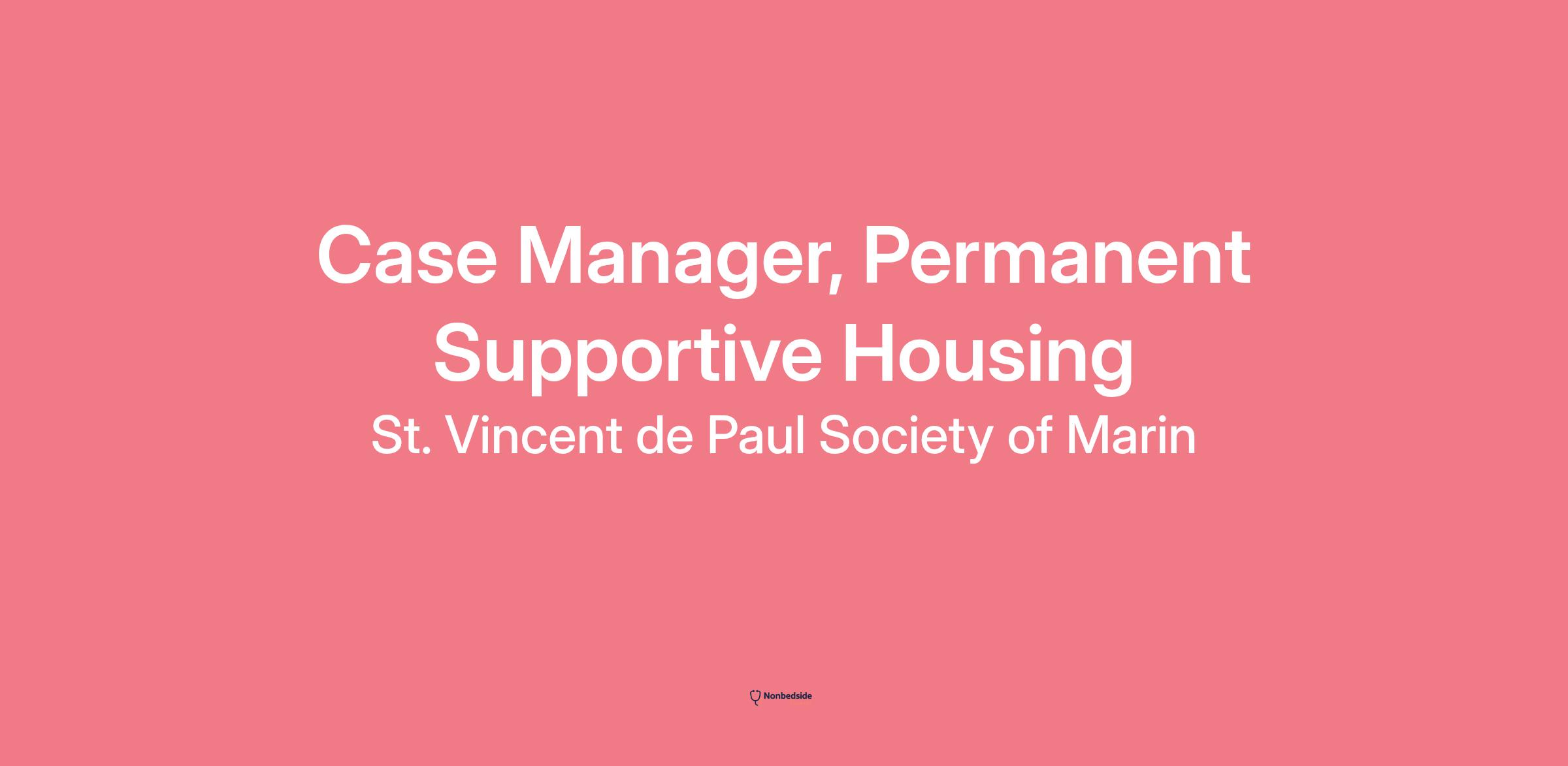 Case Manager, Permanent Supportive Housing (PSH) at St. Vincent de Paul Society of Marin — two open positions. These are full-time, non-exempt positions reporting to the Program Manager, PSH and working onsite in downtown San Rafael and in the field throughout Marin County, CA. The Case Manager, PSH helps chronically homeless individuals engage in Intensive Case Management in a meaningful way, whether currently or formerly living in an encampment. This role works with clients to reduce the impact of homelessness, assisting them in meeting their goals to achieve sustainable housing. This role focuses on working with these residents in an ongoing manner to ensure they are linked to mental health and other services, whether housed or not.
