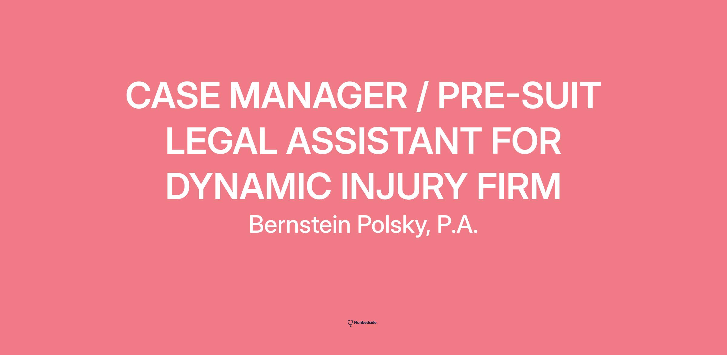 - CASE-MANAGER / PRE-SUIT LEGAL ASSISTANT (3+ years min. experience in personal injury)