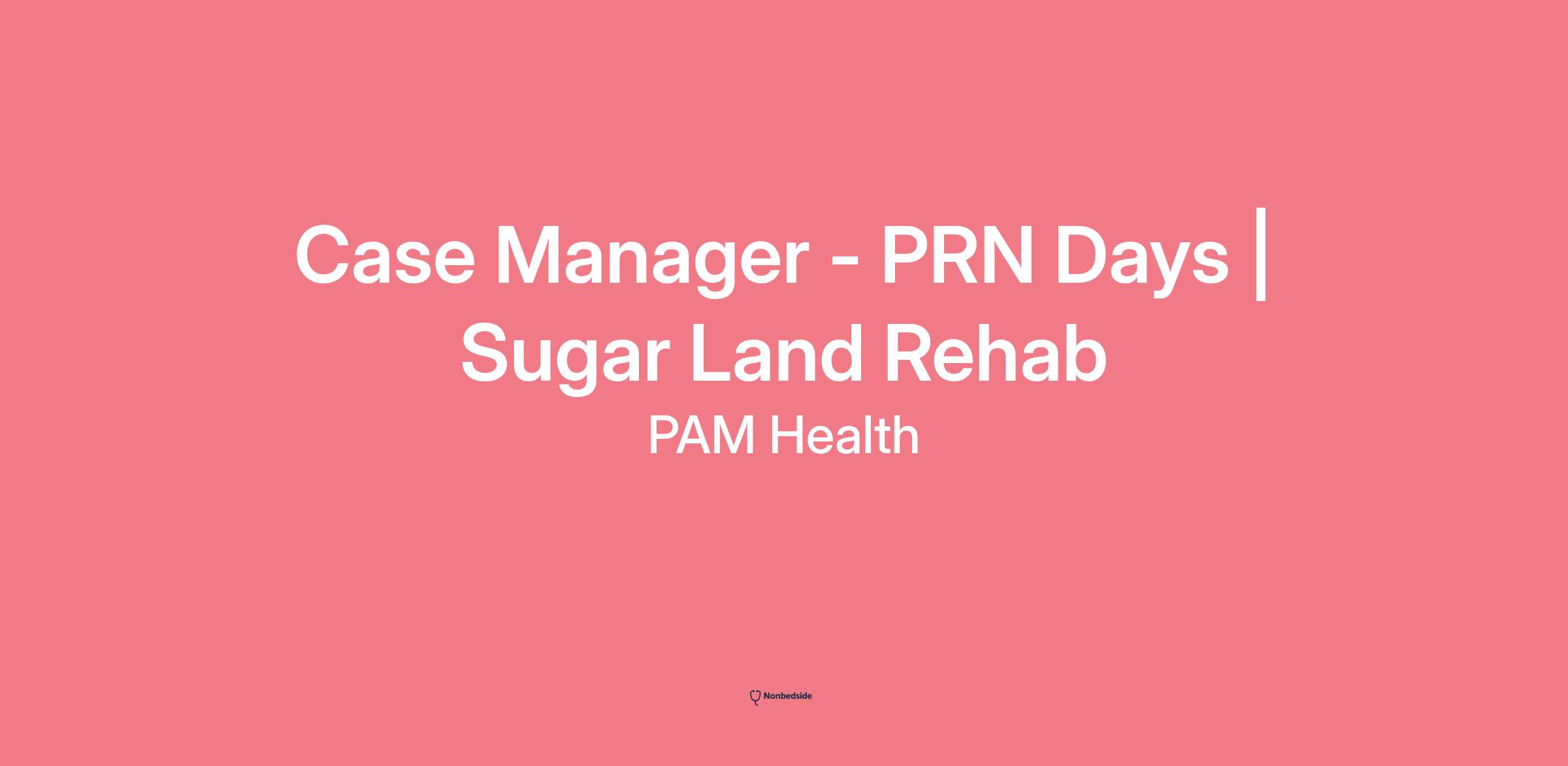 Join to apply for the Case Manager - PRN Days | Sugar Land Rehab role at PAM Health