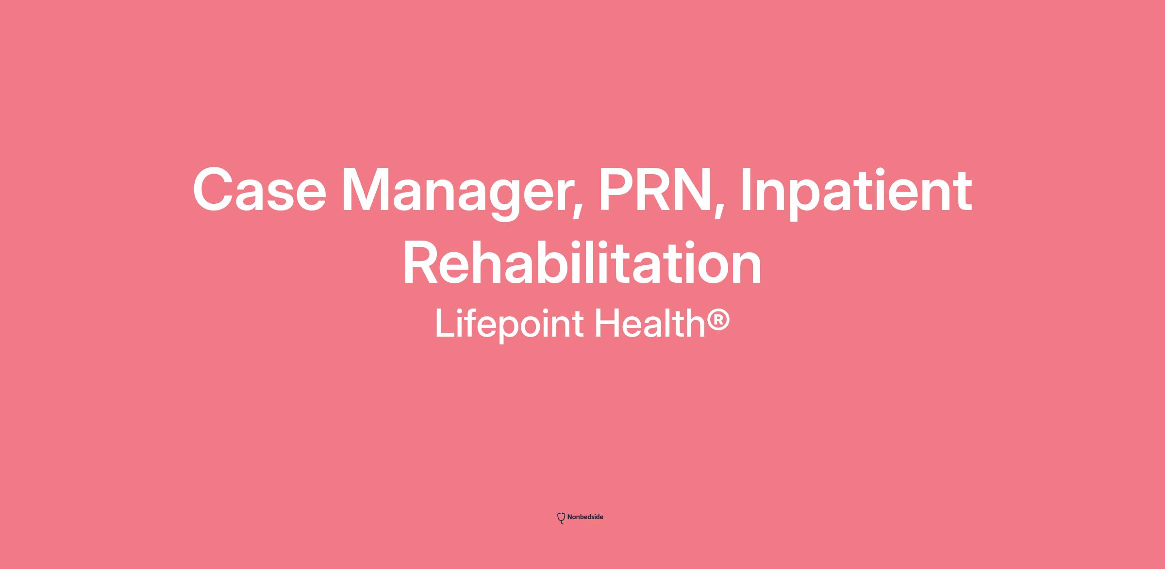 Overview Join to apply for the Case Manager, Inpatient Rehabilitation role at Lifepoint Health® .