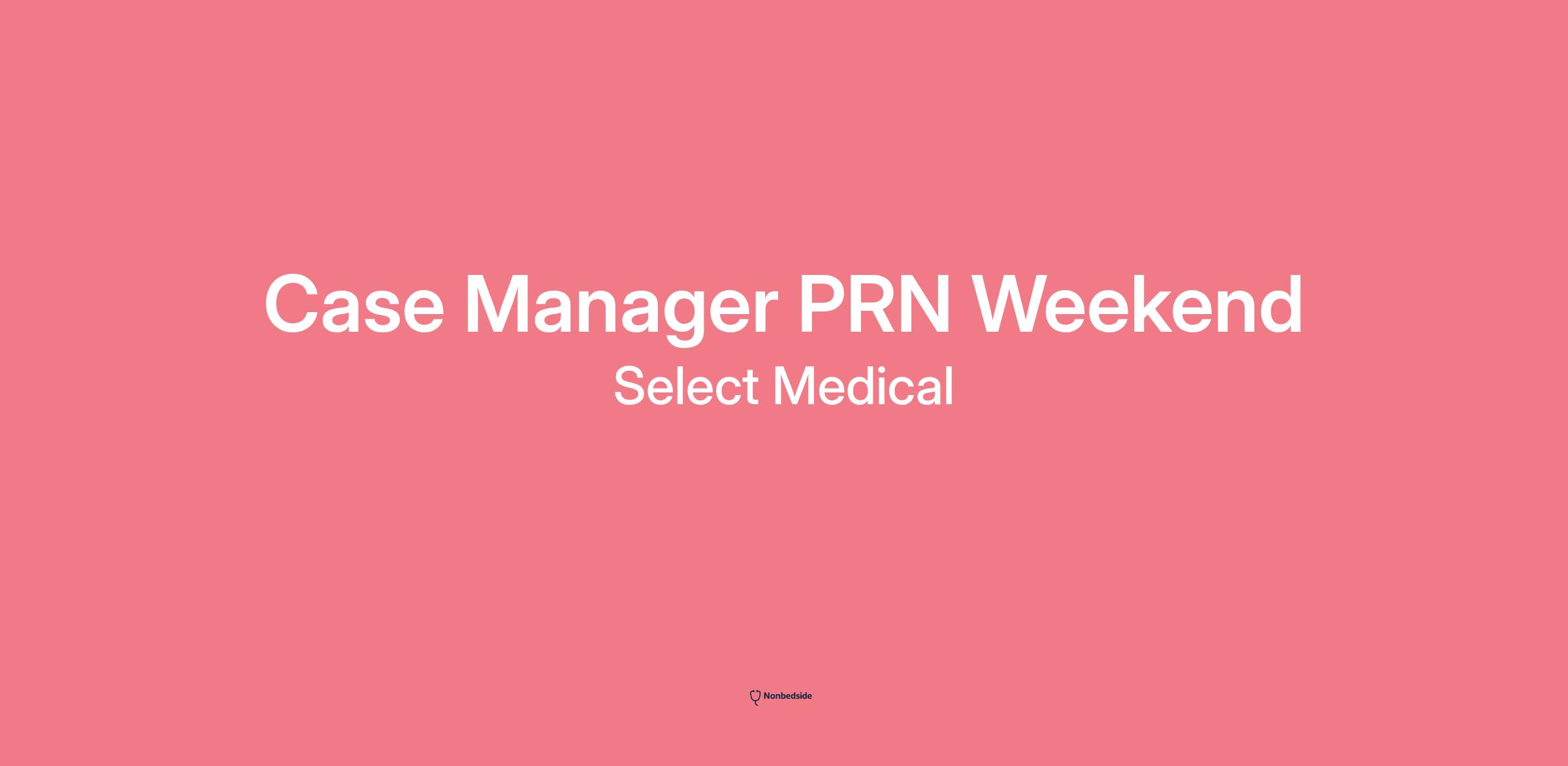 SSM Health Rehabilitation Hospital, a Joint Venture Between Select Medical and SSM Health, is seeking a Case Manager in Bridgeton, MO. The position is PRN, with 4-6 hours per weekend for weekend intake assessments.