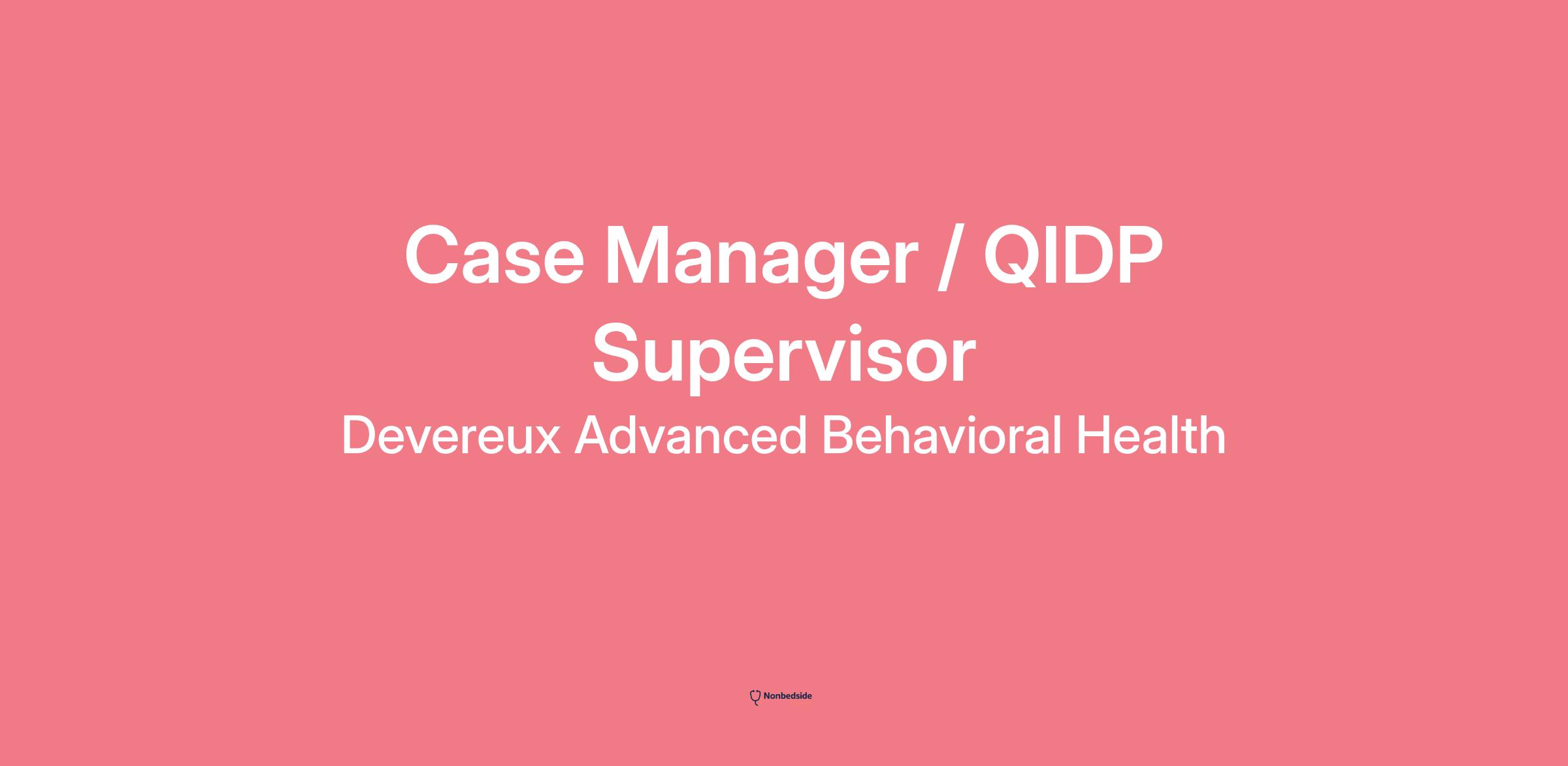 As a Case Manager / QIDP Supervisor at Devereux, you will work with other dedicated professionals who share your passion for helping individuals in need. We offer: