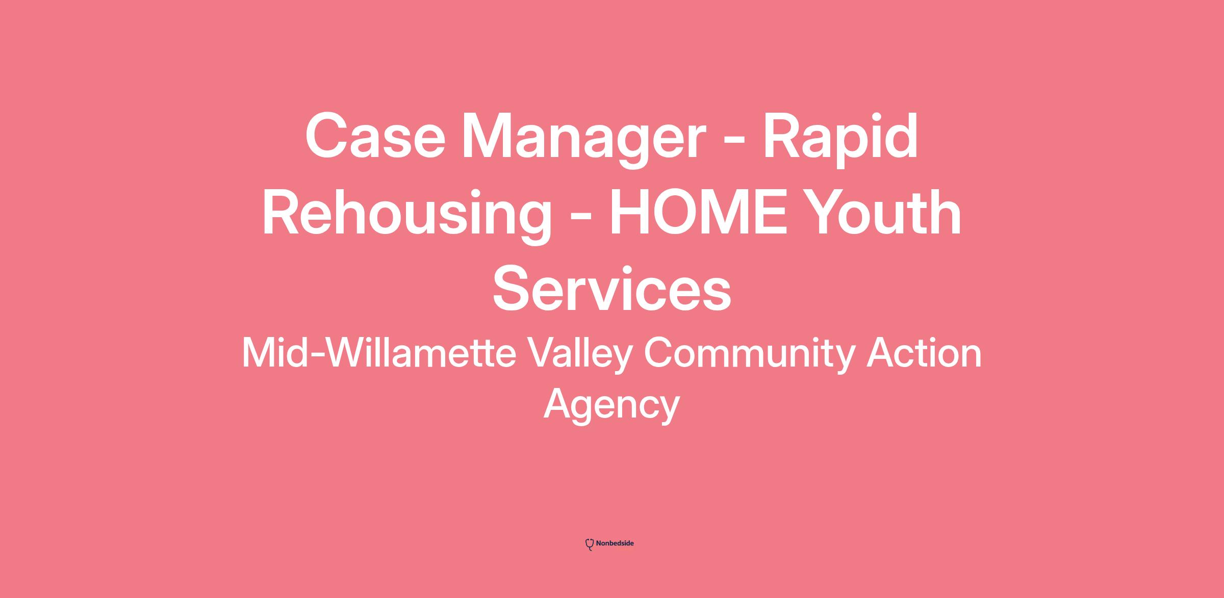 Overview The Home Youth Services Rapid Rehousing Case Manager is a grant-funded position focused on providing case management and rental assistance to homeless individuals, families, and youth in Marion and Polk Counties. The person in this role will provide direct services to individuals, which include; eligibility screening, program enrollment, participant follow-ups and check-ins. Case managers will also be responsible for processing required paperwork, data entry and other general program supports. This position will directly align with the Housing First initiatives. This is a grant-funded position contingent upon the continuation of program funding.