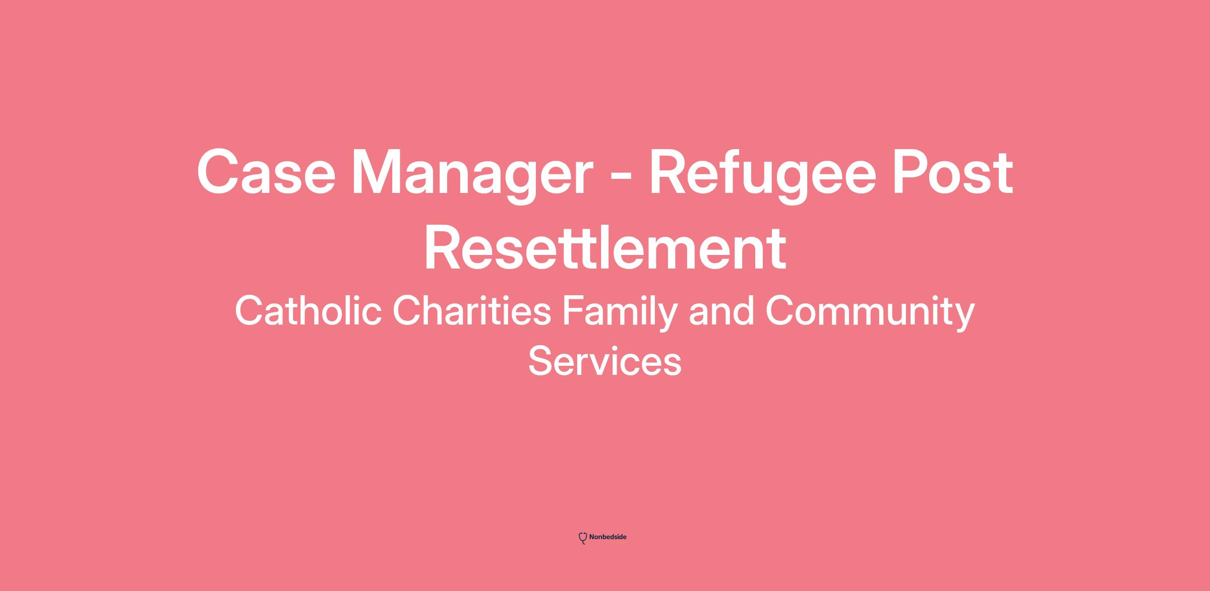 Case Manager - Refugee Post Resettlement Join to apply for the Case Manager - Refugee Post Resettlement role at Catholic Charities Family and Community Services