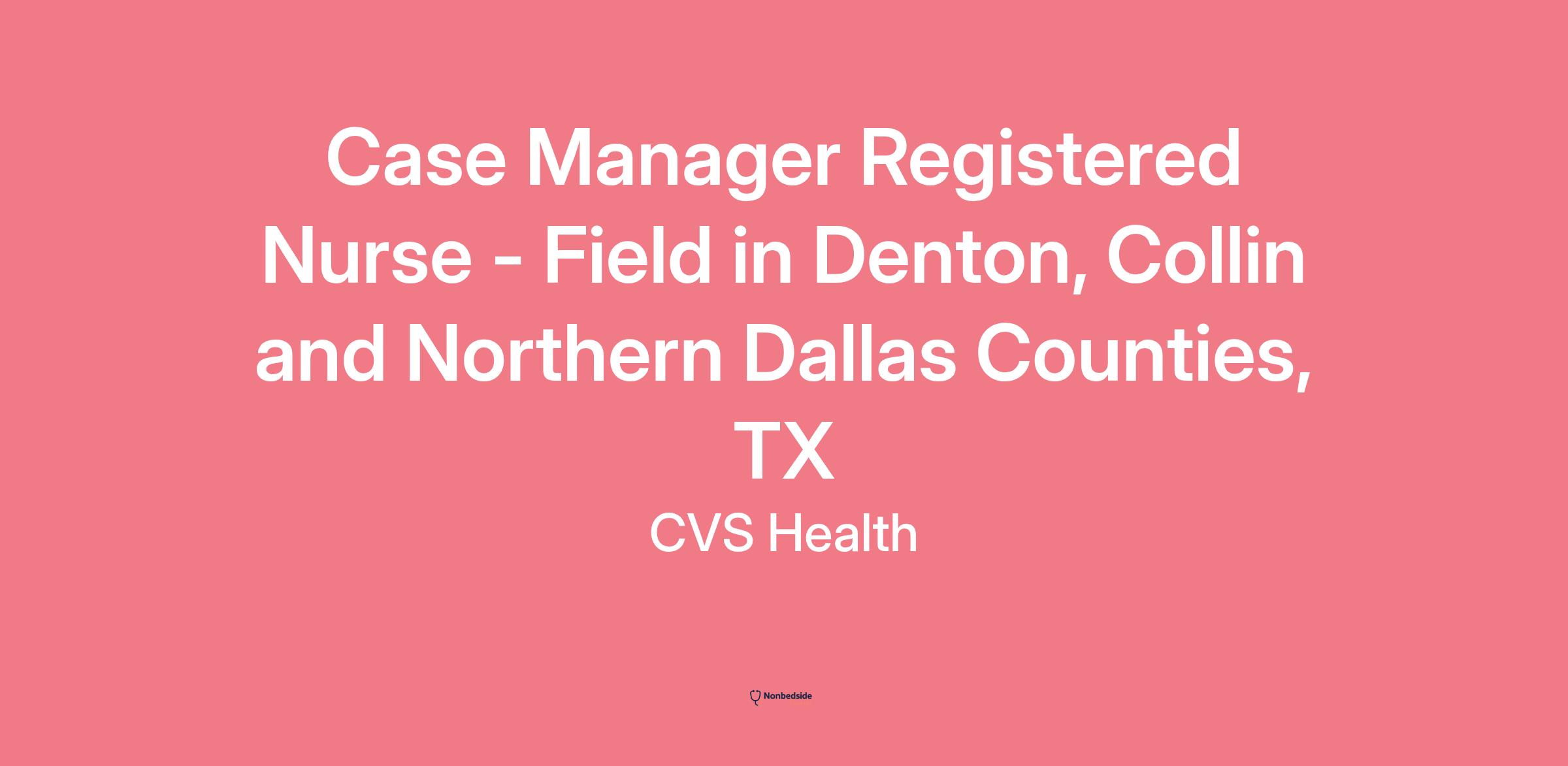 At CVS Health, weu2019re building a world of health around every consumer and surrounding ourselves with dedicated colleagues who are passionate about transforming health care. As the nationu2019s leading health solutions company, we reach millions of Americans through our local presence, digital channels and more than 300,000 purpose-driven colleagues u2013 caring for people where, when and how they choose in a way that is uniquely more connected, more convenient and more compassionate. And we do it all with heart, each and every day. Position Summary This position is work from home and will require home visits and possible visits to Nursing Facility. Local travel: 50-75% Territory includes Dallas, Denton, Fort Worth, Hunt, Collin and/or Tarrant county Roles and Responsibilities: + Nurse Case Manager is responsible for telephonically and/or face to face assessing, planning, implementing and coordinating all case management activities with members to evaluate the medical needs of the member to facilitate the memberu2019s overall wellness. + Develops a proactive course of action to address issues presented to enhance the short and long-term outcomes as well as opportunities to enhance a memberu2019s overall wellness through integration. + Services strategies policies and programs are comprised of network management and clinical coverage policies. + Coordinates and implements assigned care plan activities and monitors care plan progress. + Conducts multidisciplinary review in order to achieve optimal outcomes - Identifies and escalates quality of care issues through established channels. + Utilizes negotiation skills to secure appropriate options and services necessary to meet the memberu2019s benefits and/or healthcare needs. + Utilizes influencing/ motivational interviewing skills to ensure maximum member engagement and promote lifestyle/behavior changes to achieve optimum level of health. + Provides coaching, information and support to empower the member to make ongoing independent medical and/or healthy lifestyle choices. + Helps member actively and knowledgeably participate with their provider in healthcare decision-making. + Monitoring, Evaluation and Documentation of Care: Utilizes case management and quality management processes in compliance with regulatory and accreditation guidelines and company policies and procedures. Required Qualifications + License Registered Nurse + 3+ years clinical practice experience + 1+ year Case Management experience Preferred Qualifications + MCO experience + Star Kids experience + Bilingual preferred Education + Bachelors degree preferred Anticipated Weekly Hours 40 Time Type Full time Pay Range The typical pay range for this role is: $60,522.00 - $129,615.00 This pay range represents the base hourly rate or base annual full-time salary for all positions in the job grade within which this position falls. The actual base salary offer will depend on a variety of factors including experience, education, geography and other relevant factors. This position is eligible for a CVS Health bonus, commission or short-term incentive program in addition to the base pay range listed above. Our people fuel our future. Our teams reflect the customers, patients, members and communities we serve and we are committed to fostering a workplace where every colleague feels valued and that they belong. Great benefits for great people We take pride in our comprehensive and competitive mix of pay and benefits u2013 investing in the physical, emotional and financial wellness of our colleagues and their families to help them be the healthiest they can be. In addition to our competitive wages, our great benefits include: + Affordable medical plan options, a 401(k) plan (including matching company contributions), and an employee stock purchase plan . + No-cost programs for all colleagues including wellness screenings, tobacco cessation and weight management programs, confidential counseling and financial coaching. + Benefit solutions that address the different needs and preferences of our colleagues including paid time off, flexible work schedules, family leave, dependent care resources, colleague assistance programs, tuition assistance, retiree medical access and many other benefits depending on eligibility. For more information, visit We anticipate the application window for this opening will close on: 10/30/2025 Qualified applicants with arrest or conviction records will be considered for employment in accordance with all federal, state and local laws.We are an equal opportunity and affirmative action employer. We do not discriminate in recruiting, hiring, promotion, or any other personnel action based on race, ethnicity, color, national origin, sex/gender, sexual orientation, gender identity or expression, religion, age, disability, protected veteran status, or any other characteristic protected by applicable federal, state, or local law.