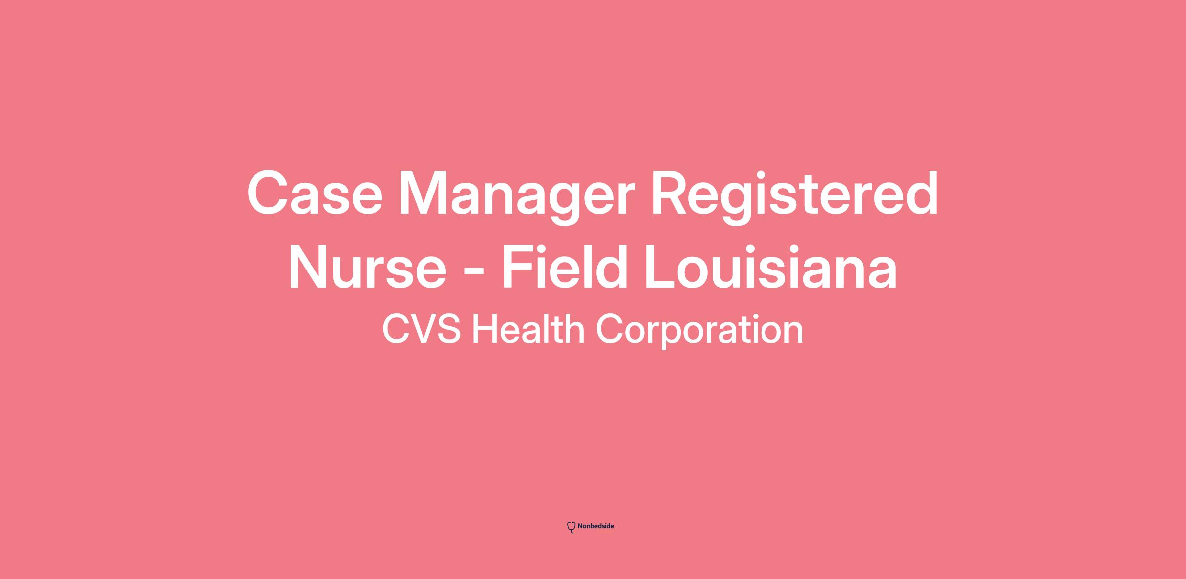 Case Manager Registered Nurse - Field Louisiana page is loaded## Case Manager Registered Nurse - Field Louisianaremote type: Fieldlocations: Field-Louisianatime type: Full timeposted on: Posted Yesterdaytime left to apply: End Date: October 27, 2025 (25 days left to apply)job requisition id: R0681440At CVS Health, we’re building a world of health around every consumer and surrounding ourselves with dedicated colleagues who are passionate about transforming health care.As the nation’s leading health solutions company, we reach millions of Americans through our local presence, digital channels and more than 300,000 purpose-driven colleagues – caring for people where, when and how they choose in a way that is uniquely more connected, more convenient and more compassionate. And we do it all with heart, each and every day.**Position Summary**This is a full-time field teleworker position that requires Louisiana residency. Travel is required 75% of the time or more. Field based travel locations may include member homes, residential treatment facilities, hospitals, group homes, shelters, and community facilities.The Case Manager RN (CM RN) is responsible for telephonically and/or face to face assessing, planning, implementing, and coordinating all case management activities with members to evaluate the medical needs of the member to facilitate the member’s overall wellness. Develops a proactive course of action to address issues presented to enhance the short and long-term outcomes as well as opportunities to enhance a member’s overall wellness through integration. Services strategies policies and programs are comprised of network management and clinical coverage policies. Schedule is Monday – Friday, 8am-5pm standard business hours. No nights, weekends, or holidays.**Required Qualifications*** Must reside in Louisiana with preference for candidates in Orleans, Jefferson, St. Bernard or Plaquemines parishes.* Registered Nurse with current unrestricted Louisiana (LA) license* 5+ years’ clinical practice experience* 2+ years’ Case management and discharge planning experience* 2+ years’ experience with personal computer, keyboard, mouse, multi-system navigation; and MS Office Suite applications (Outlook, Word, Excel, SharePoint, Teams)* Must possess reliable transportation and be willing and able to travel in **Orleans, Jefferson, St. Bernard and Plaquemines parish**, 75% or more of the time. Mileage is reimbursed per our company expense reimbursement policy.**Preferred Qualifications*** Managed care/utilization review experience* Case management experience in an integrated model* Medicaid experience* Waiver experience* Certified Case Manager (CCM) certification* Familiarity with QuickBase**Education*** Associate’s degree in nursing or nursing diploma required* BSN Preferred**Anticipated Weekly Hours**40**Time Type**Full time**Pay Range**The typical pay range for this role is:$54,095.00 - $116,760.00This pay range represents the base hourly rate or base annual full-time salary for all positions in the job grade within which this position falls. The actual base salary offer will depend on a variety of factors including experience, education, geography and other relevant factors. This position is eligible for a CVS Health bonus, commission or short-term incentive program in addition to the base pay range listed above. Our people fuel our future. Our teams reflect the customers, patients, members and communities we serve and we are committed to fostering a workplace where every colleague feels valued and that they belong.**Great benefits for great people**We take pride in our comprehensive and competitive mix of pay and benefits – investing in the physical, emotional and financial wellness of our colleagues and their families to help them be the healthiest they can be. In addition to our competitive wages, our great benefits include:* **Affordable medical plan options,** a **401(k) plan** (including matching company contributions), and an **employee stock purchase plan**.* **No-cost programs for all colleagues** including wellness screenings, tobacco cessation and weight management programs, confidential counseling and financial coaching.* **Benefit solutions that address the different needs and preferences of our colleagues** including paid time off, flexible work schedules, family leave, dependent care resources, colleague assistance programs, tuition assistance, retiree medical access and many other benefits depending on eligibility.For more information, visitWe anticipate the application window for this opening will close on: 10/27/2025Qualified applicants with arrest or conviction records will be considered for employment in accordance with all federal, state and local laws.