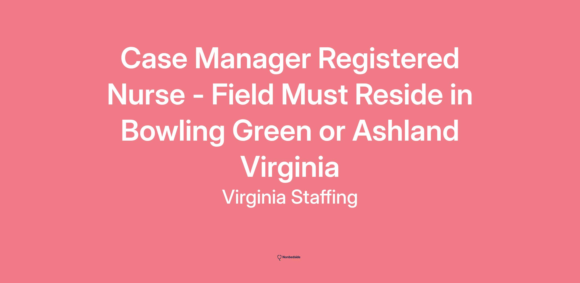 At CVS Health, we're building a world of health around every consumer and surrounding ourselves with dedicated colleagues who are passionate about transforming health care. As the nation's leading health solutions company, we reach millions of Americans through our local presence, digital channels and more than 300,000 purpose-driven colleagues caring for people where, when and how they choose in a way that is uniquely more connected, more convenient and more compassionate. And we do it all with heart, each and every day. This Case Management position is with Aetna's Long-Term Services and Supports (LTSS) team and is a field-based position out of Bowling Green / Ashland Area Virginia. The requirements is for candidates to hold a Virginia RN, LPN, or BH License, and travel up to 50-75% of the time to meet with members face to face. Typical office working environment with productivity and quality expectations Work requires the ability to perform close inspection of hand written and computer generated documents as well as a PC monitor. Sedentary work involving periods of sitting, talking, listening. Work requires sitting for extended periods, talking on the telephone, and typing on the computer.