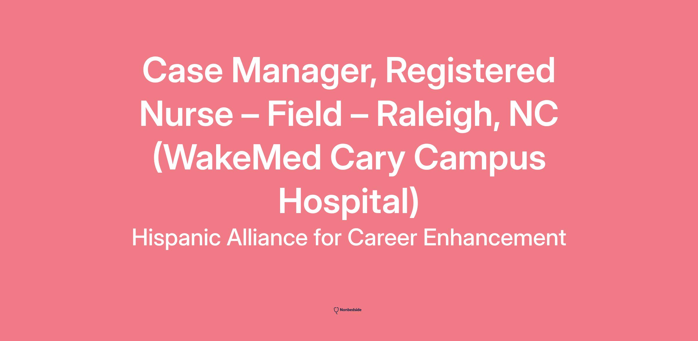 1+ year(s) in case management, discharge planning, hospice, and/or home health care coordination experience or experience working or have worked at WakeMed Cary Campus Hospital.