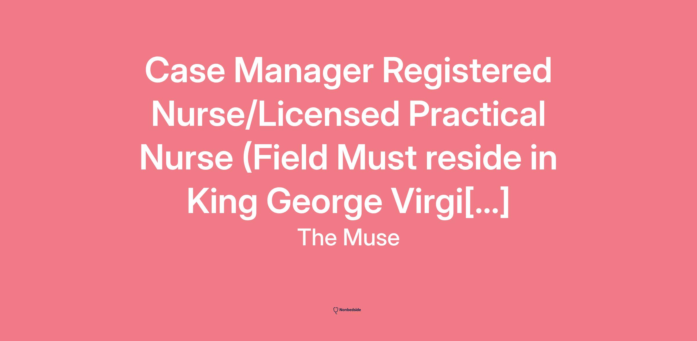 Case Manager Registered Nurse/Licensed Practical Nurse (Field Must reside in King George Virginia and Surround Counties) Case Manager Registered Nurse/Licensed Practical Nurse (Field Must reside in King George Virginia and Surround Counties) 1 day ago Be among the first 25 applicants